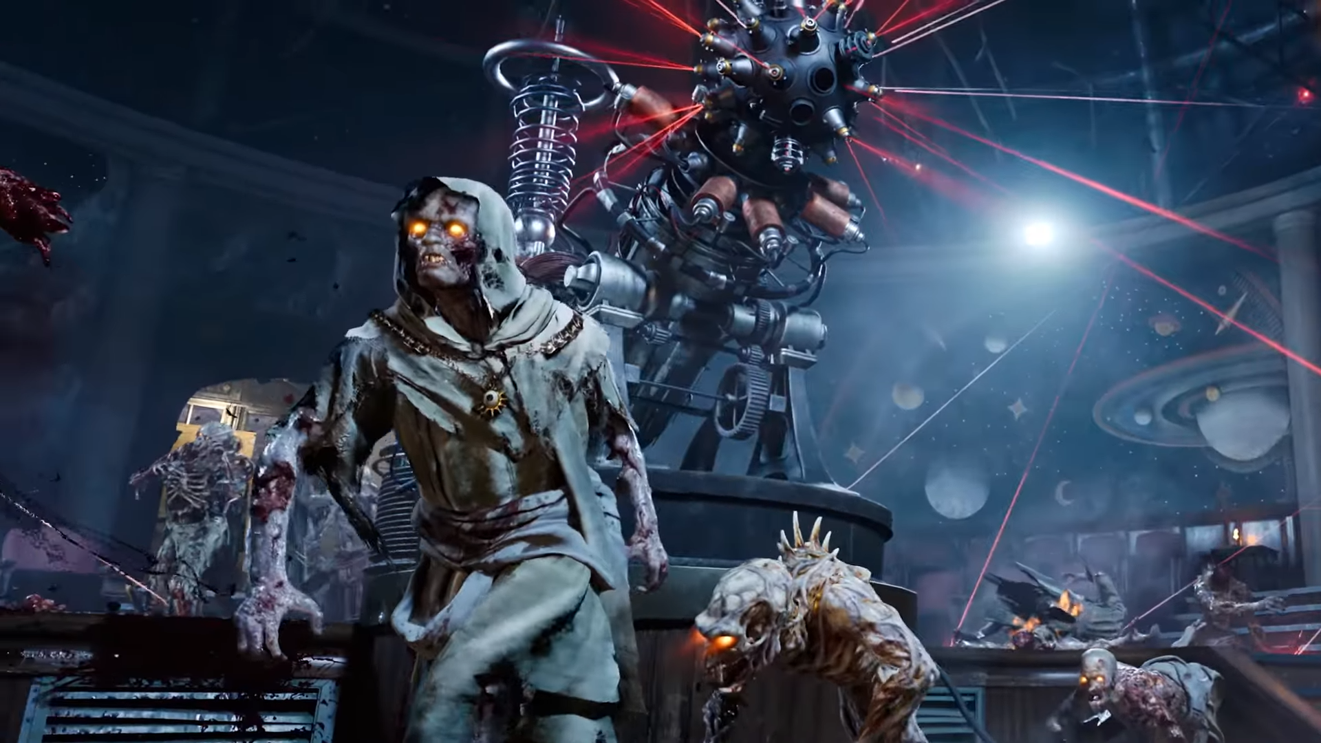 Season 1 introduces a new main Zombies map called Astra Malorum, set on a skull-shaped rock in space. It brings a new robotic enemy called O.S.C.A.R. and a new Wonder Weapon known as the LGM-1, which fires UFO-shaped projectiles.