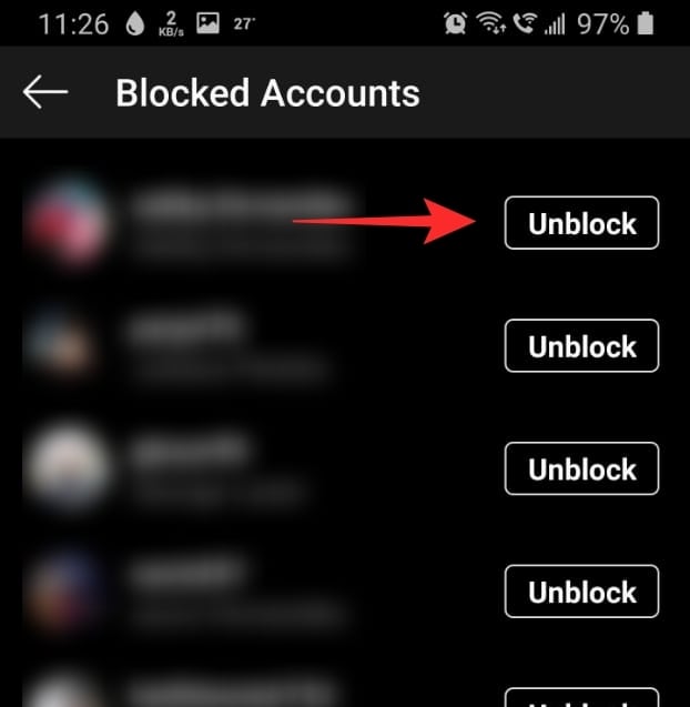 Tap ‘Unblock’ beside the account that you would like to unblock. You will have to reconfirm it again.