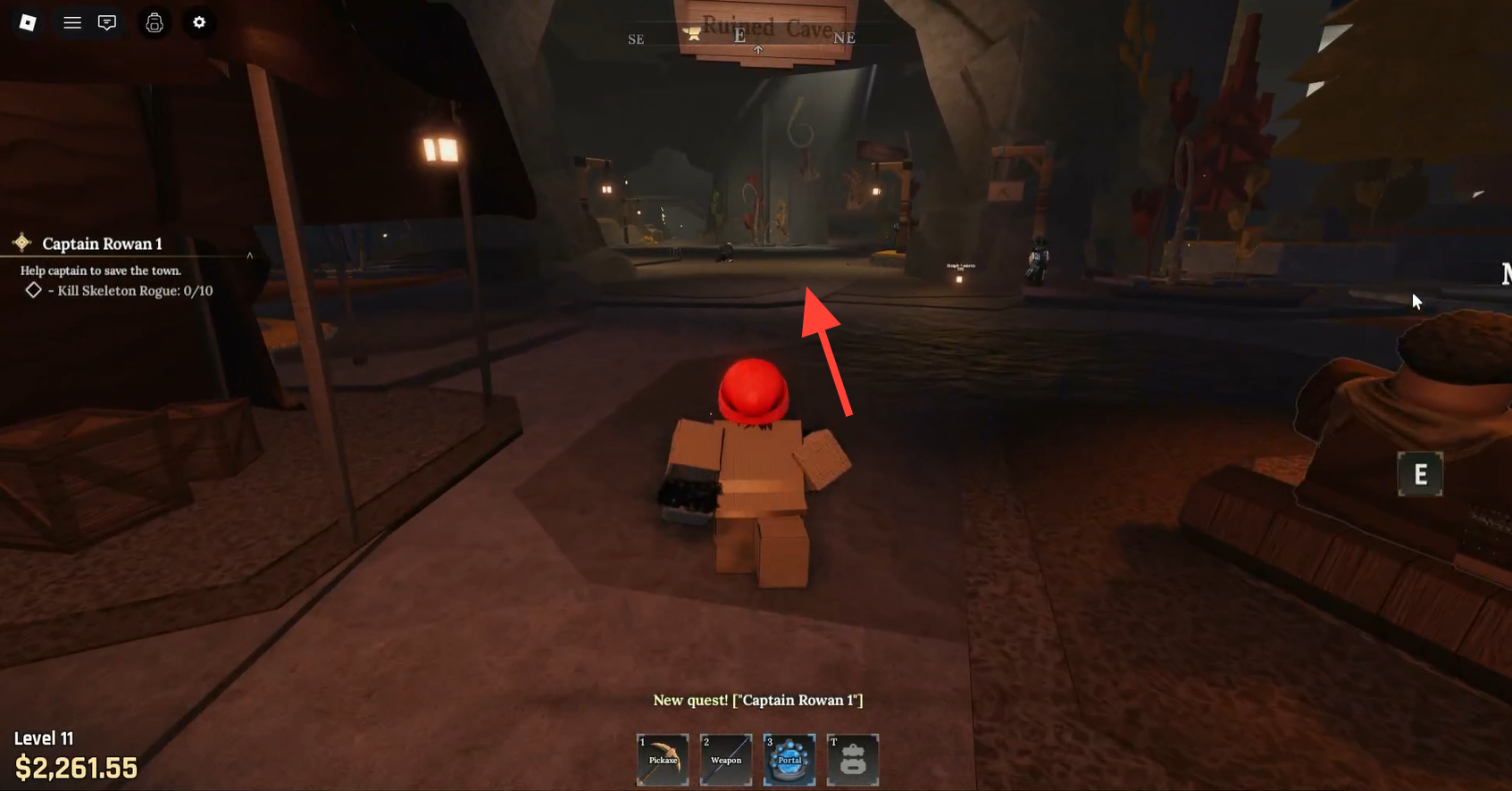 Complete the Wizard’s Portal Tool quest in World 1, then teleport to Forgotten Kingdom and speak with Captain Rowan at the camp near the Ruined Cave.