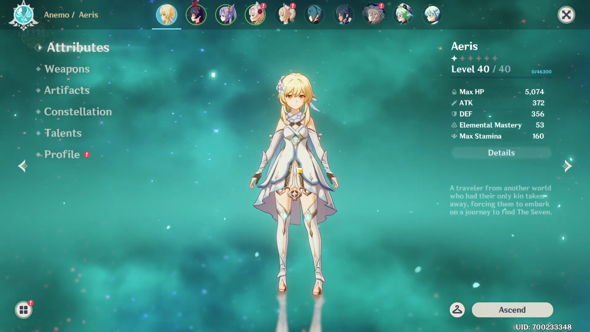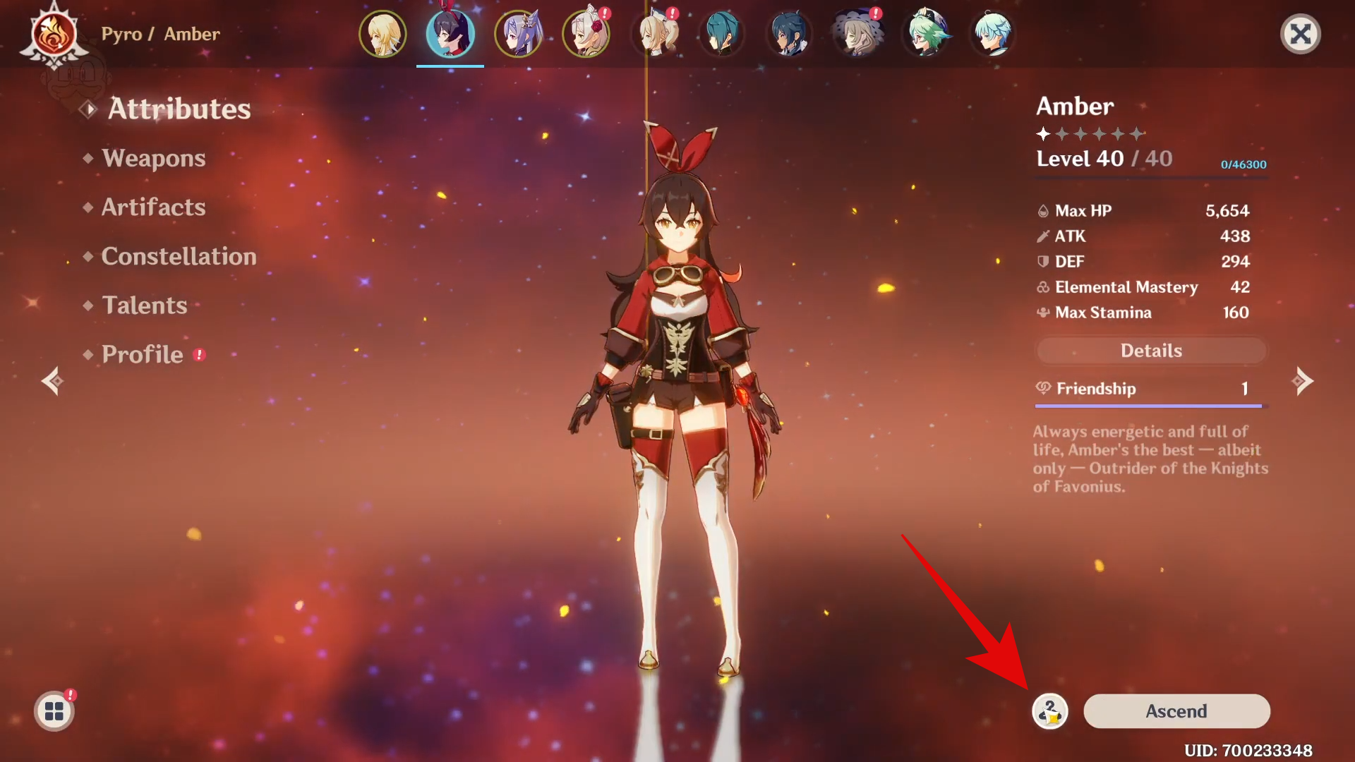 Launch Genshin Impact on your system and open the character menu.
