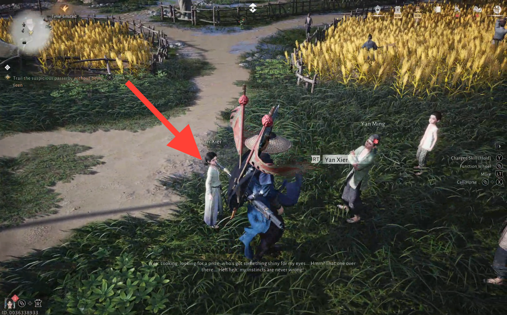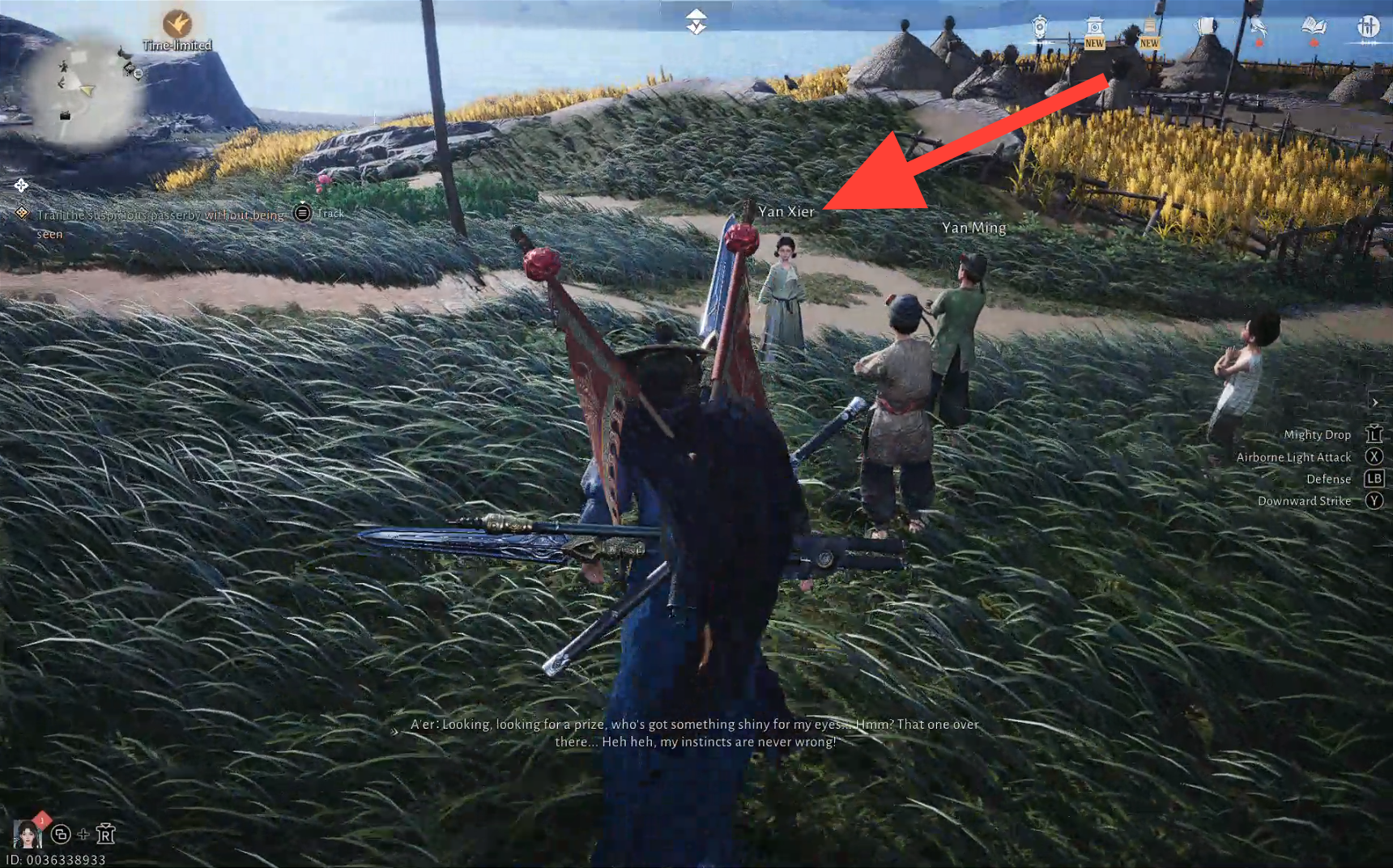 Once you reach the marked location above, speak with Yan Xier, who is standing with a group of kids in Harvestfall Village, to start the quest.