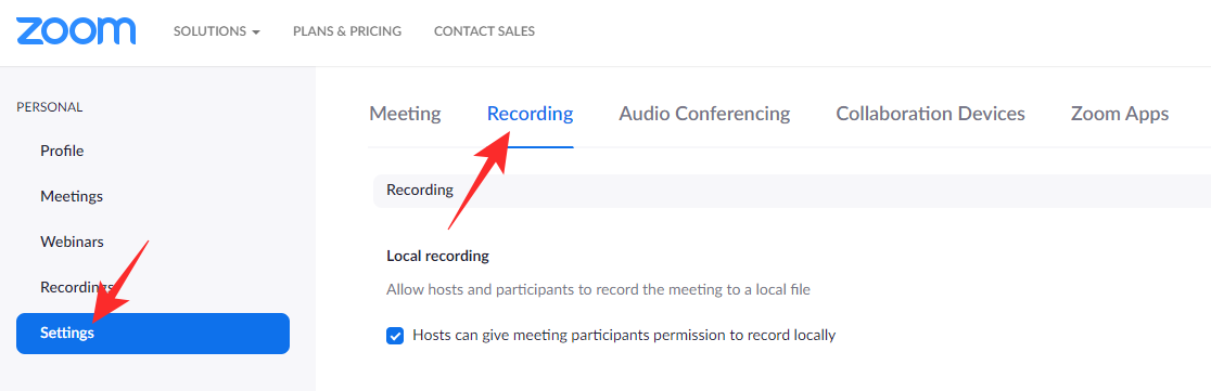 Now, click on the ‘Recording’ tab on your left, under the ‘Personal’ banner.