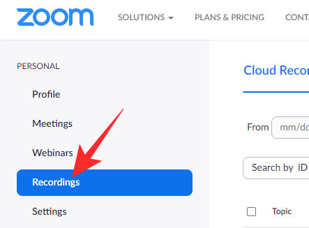 Then, go to the ‘Recordings’ tab on your left.