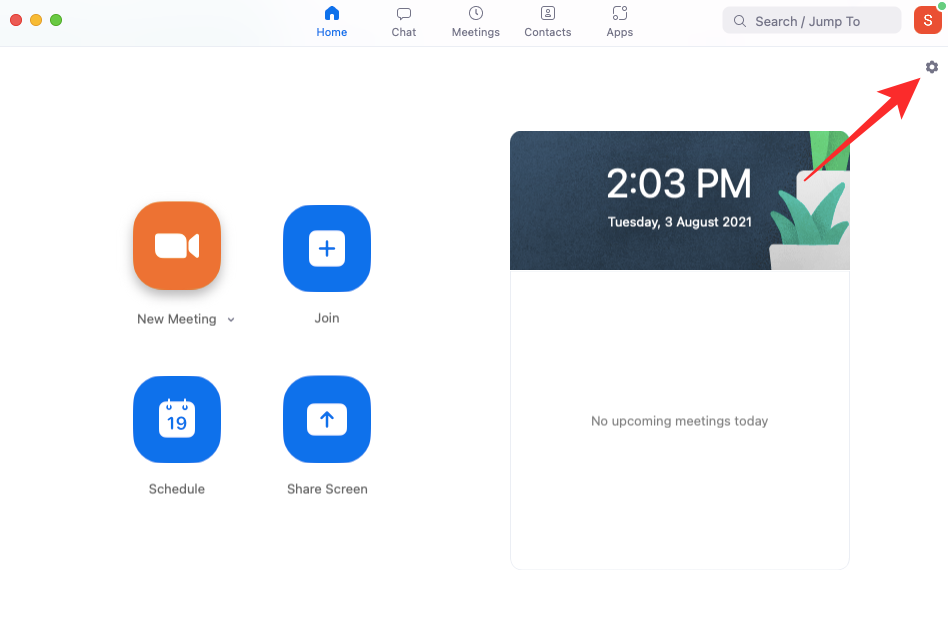 As an alternative, you could use the desktop client to open the app. After launching the application, click on the Settings option at the top-right corner of the Zoom window.