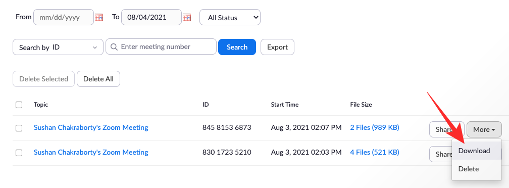 If you have multiple files under a meeting, they will be downloaded separately. Click on ‘Download’ again to start downloading to your hard drive.