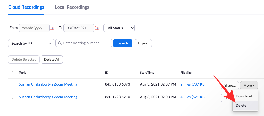 - How to delete cloud recordings