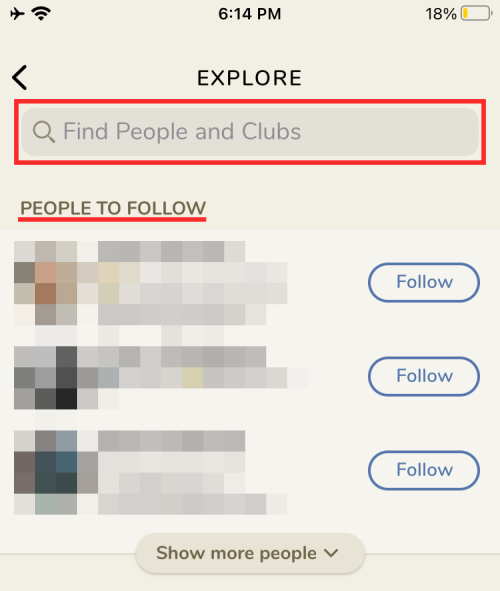 Although a lot of Clubhouse’s functionality differs from other social media apps, searching for people to meet isn’t one of them. You can search for people you can follow right from the lobby or hallway section. You can use the search utility by tapping on the ‘Find people to follow’ section in the Clubhouse lobby.