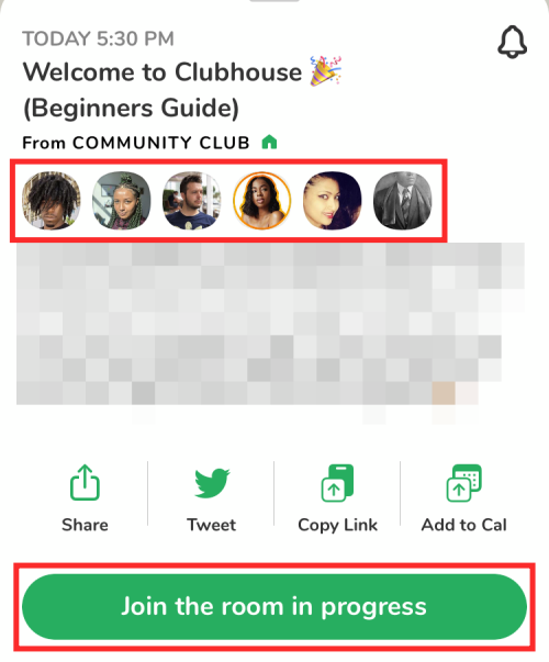 Additionally, when this club hosts a Clubhouse room in the future, you should be able to see it in the lobby. You can then connect to more people by tapping on their picture from within the room.