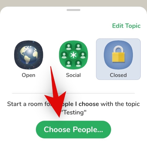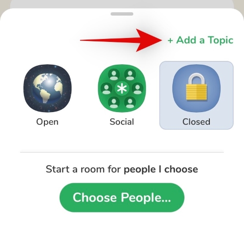 Add a topic for your closed room in the text box now. Once you are done, tap on ‘Set Topic’.