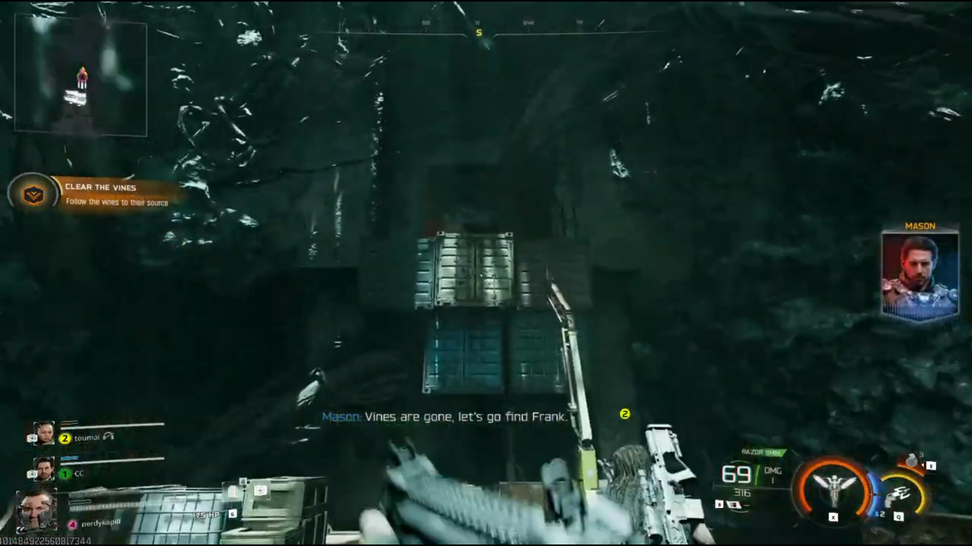 Keep following the vines, on your way you will encounter multiple ammunition and armor crates containing plethora of firearm options. The vines will lead you to a container holding Woods. Opening the container will trigger a cutscene which will end with the entrance of the nightmare boss called "The Nightmare". The boss has an impenetrable skin so shooting it anywhere else would be pointless, aim for the outgrowths to damage and weaken the boss.