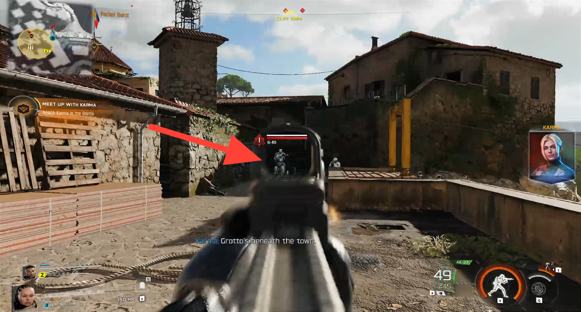 In the Inside mission, we encountered G-R5 during the "Meet up with Karma" objective in Cliff Town.