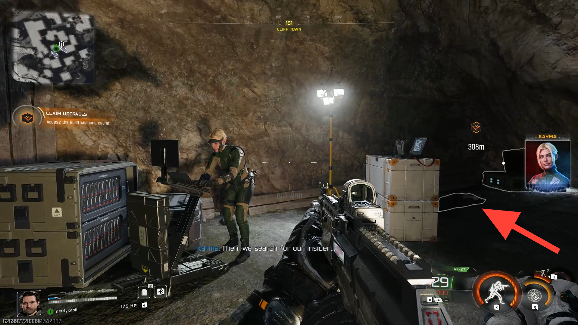 The “The Truth” intel in the Inside mission is found in the Grotto where you meet Karma. Look to her right near the ammo box—on the darker south side of the dock, there’s a body bag. Interact with it to collect the intel.