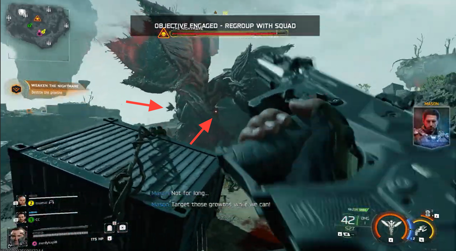 Step 2: Weaken the nightmare by destroying the growths