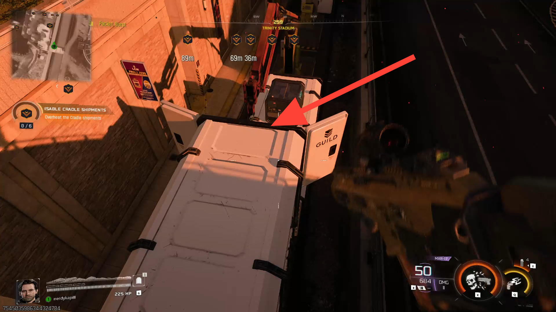 Drop into the open Guild container, then grab the “Trigger Finger” intel hidden between the two large boxes.
