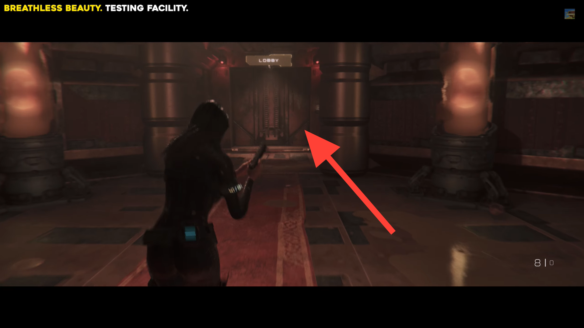 In the Lobby, turn right twice and follow the path. Image credits: TeamKill Media / YouTube: 100% Guides