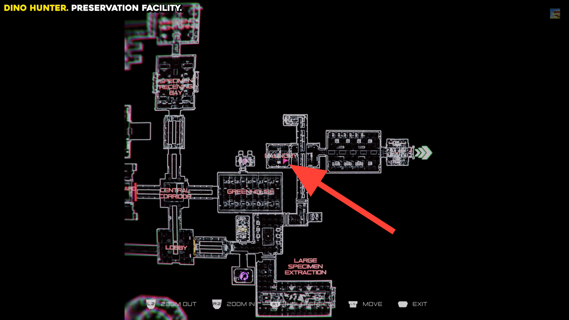 Go through the next right-side door, continue straight, then turn left into the fixed-camera area, the Dino Hunter outfit is at the end.