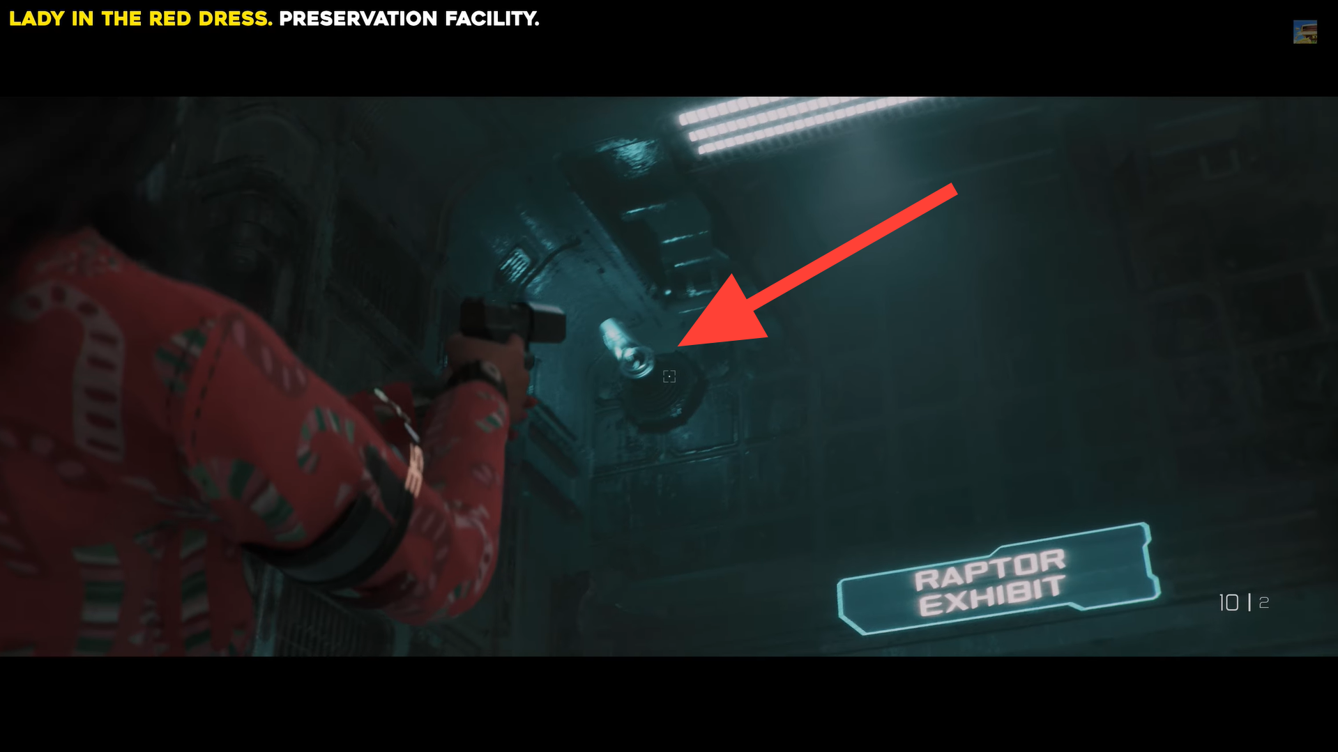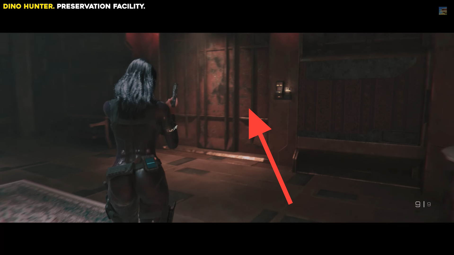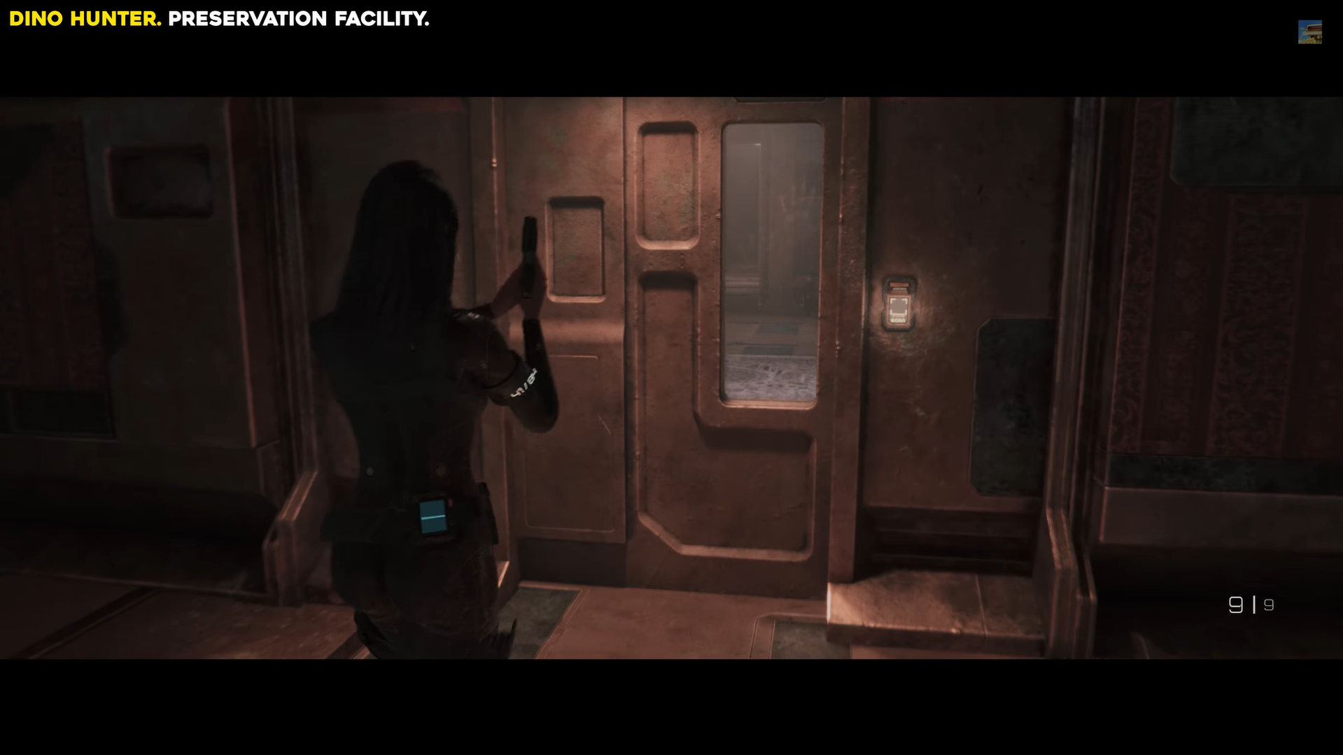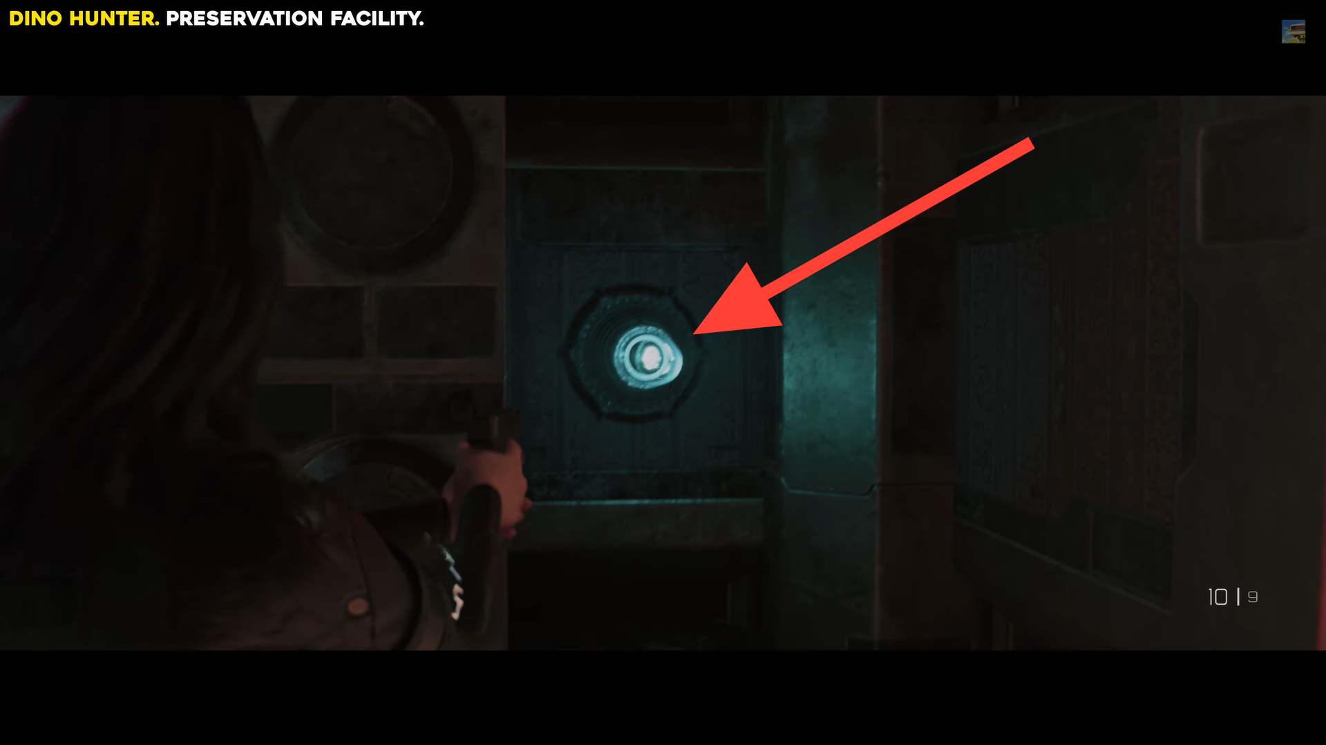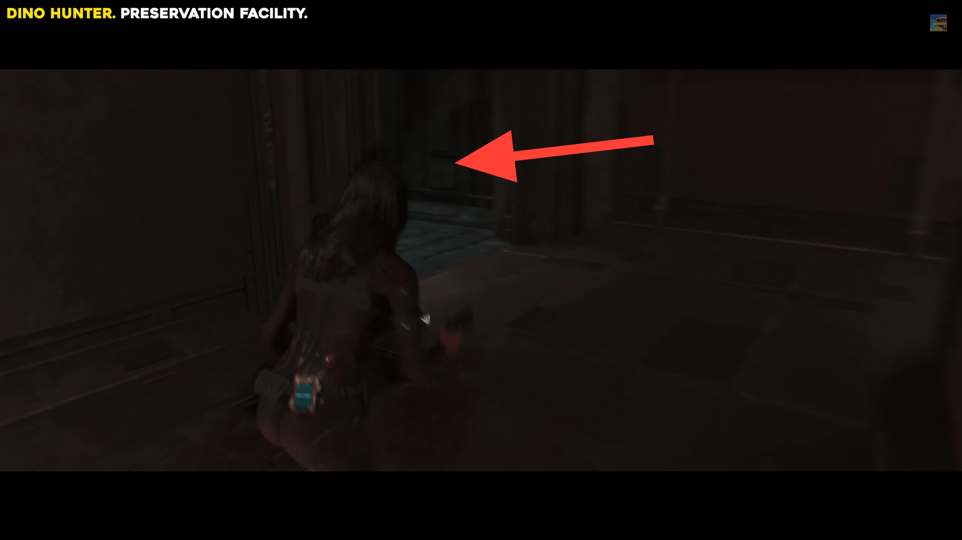 Go through the next right-side door, continue straight, then turn left into the fixed-camera area, the Dino Hunter outfit is at the end. Image credits: TeamKill Media / YouTube: 100% Guides