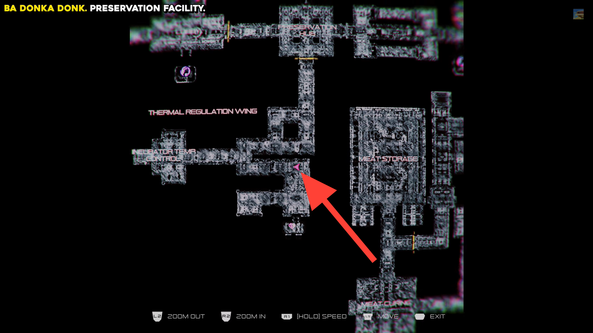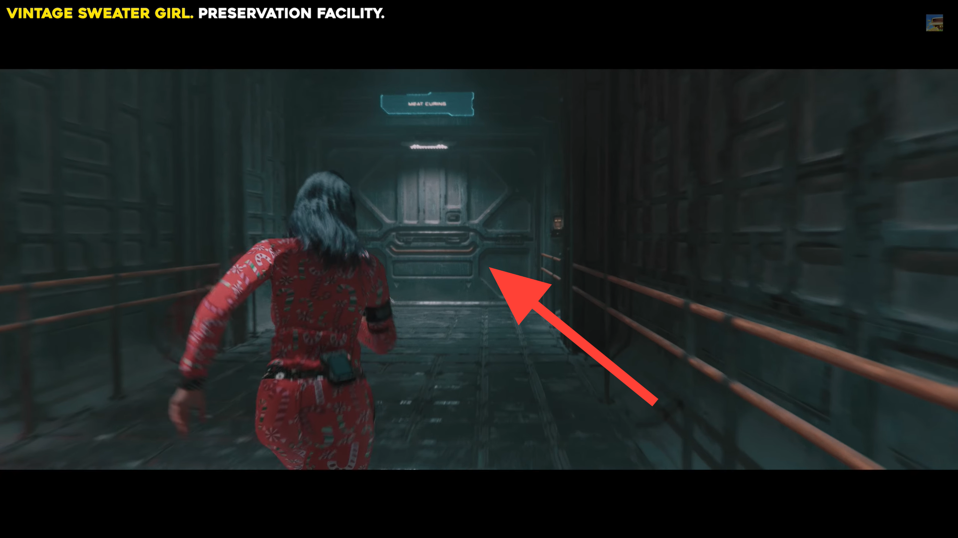 In Meat Curing, go left into Meat Processing and follow to the fixed-camera area. Image credits: TeamKill Media / YouTube: 100% Guides