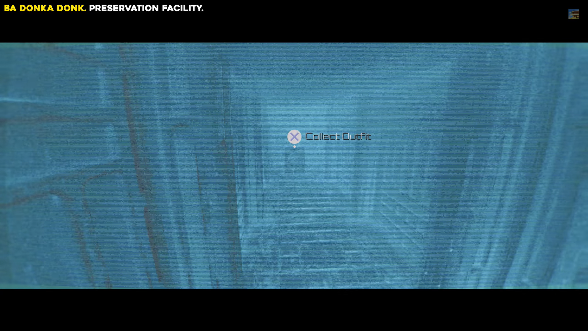 Turn right twice, go down the stairs on the left, pass through the doorway next to the painting into the fixed-camera area, and follow the path to the end to collect the Ba Donka Donk outfit.