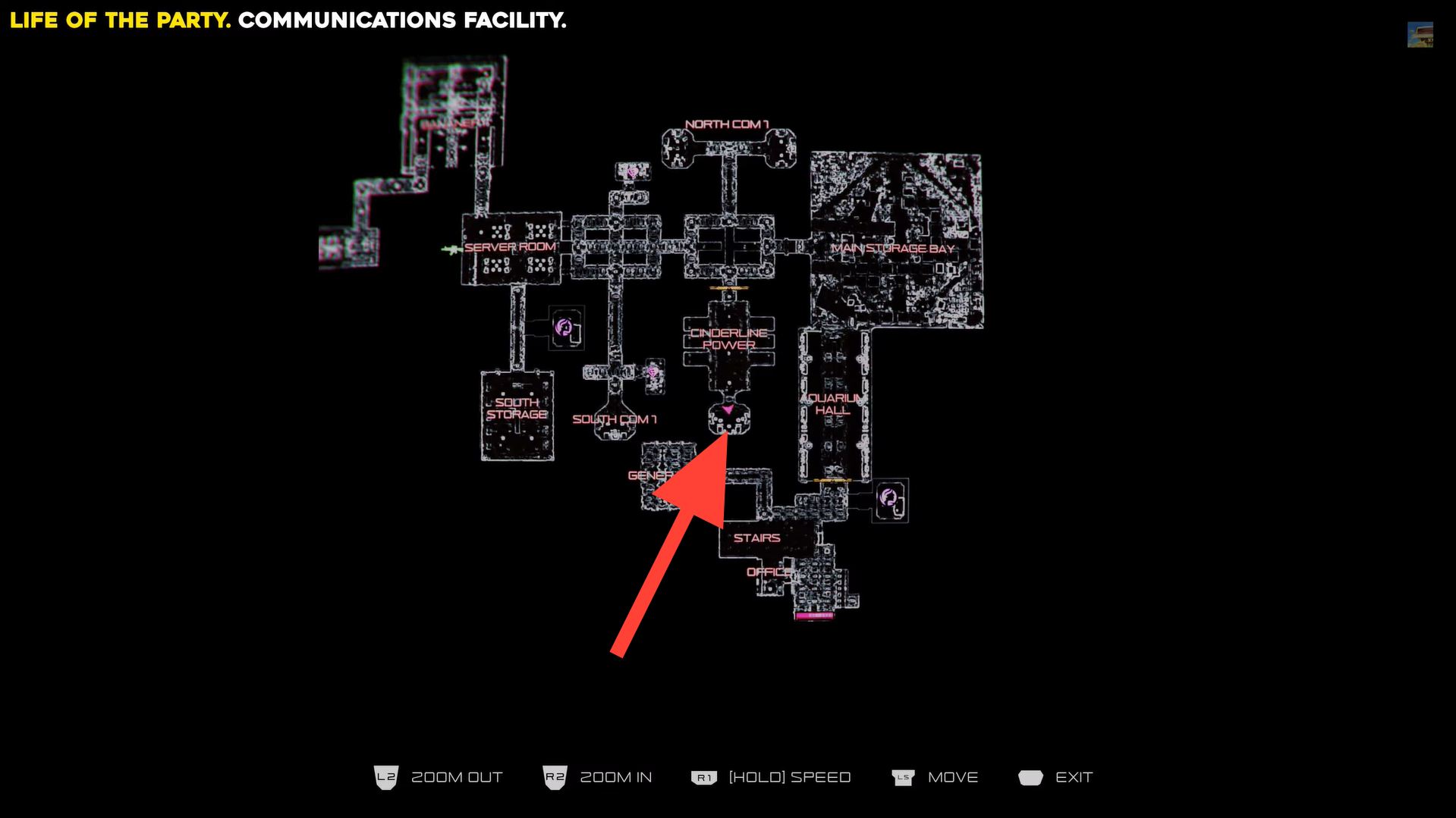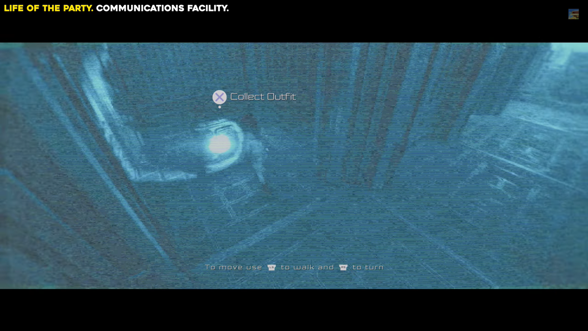 Continue straight, pass through the vents and a few doors until you reach the fixed-camera area, then follow the path to grab the Life of the Party outfit.