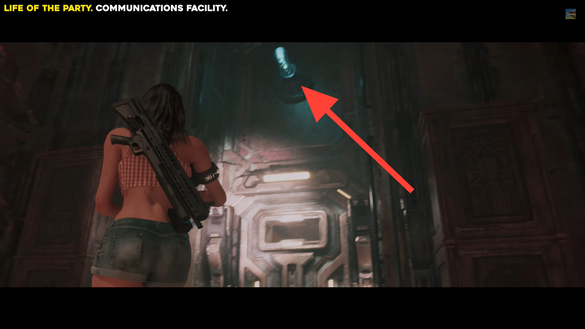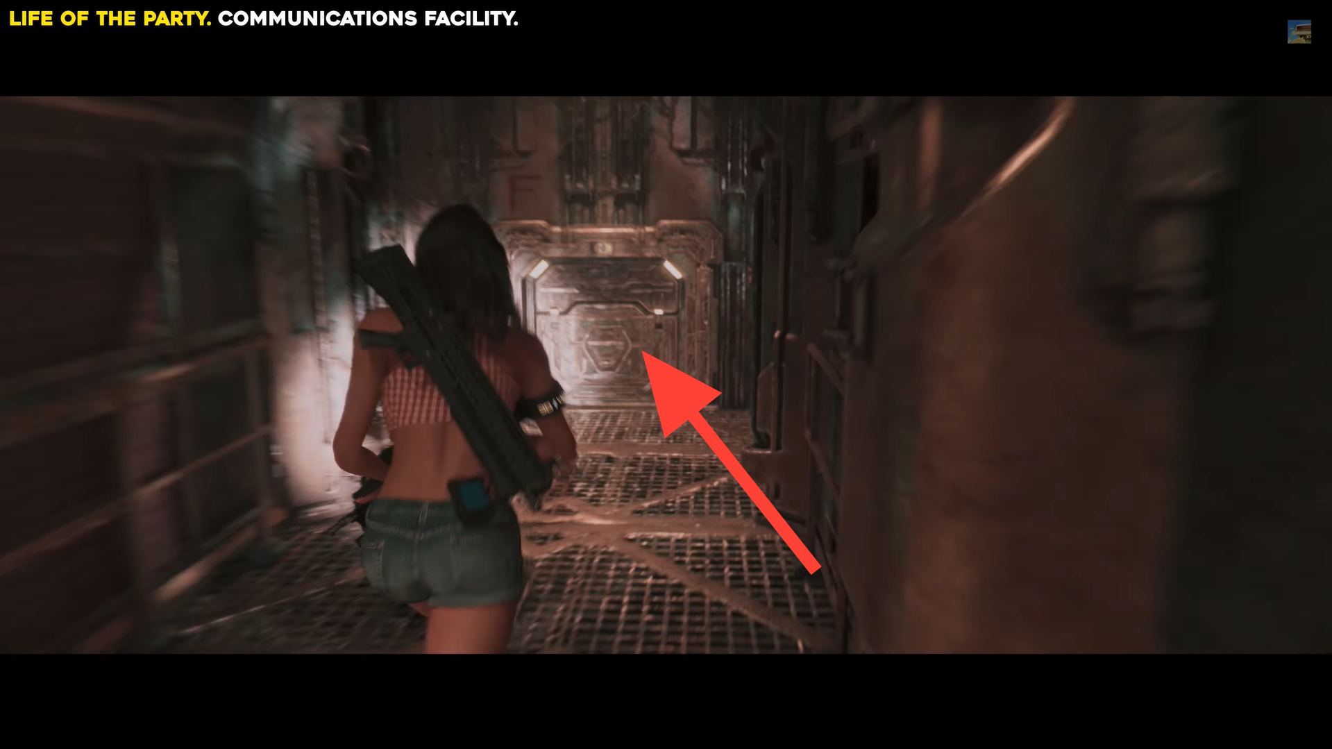 Head to the room just right of the Server Room in the Communication Facility, shoot the white bulb above the door, then enter and continue straight through several doors.
