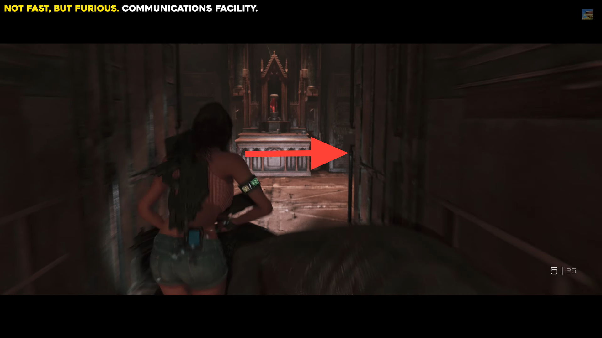 Take two rights into the fixed-camera area. Image credits: TeamKill Media / YouTube: 100% Guides