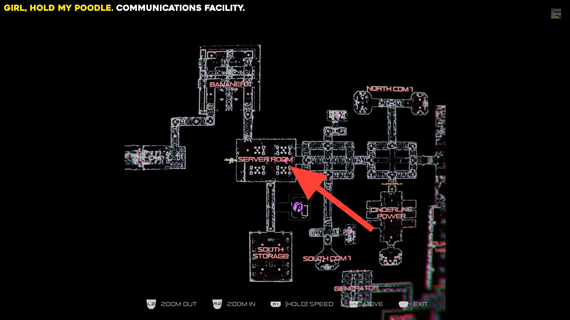 | Girl, Hold my Poodle | East side of Server Room, Communication Facility |