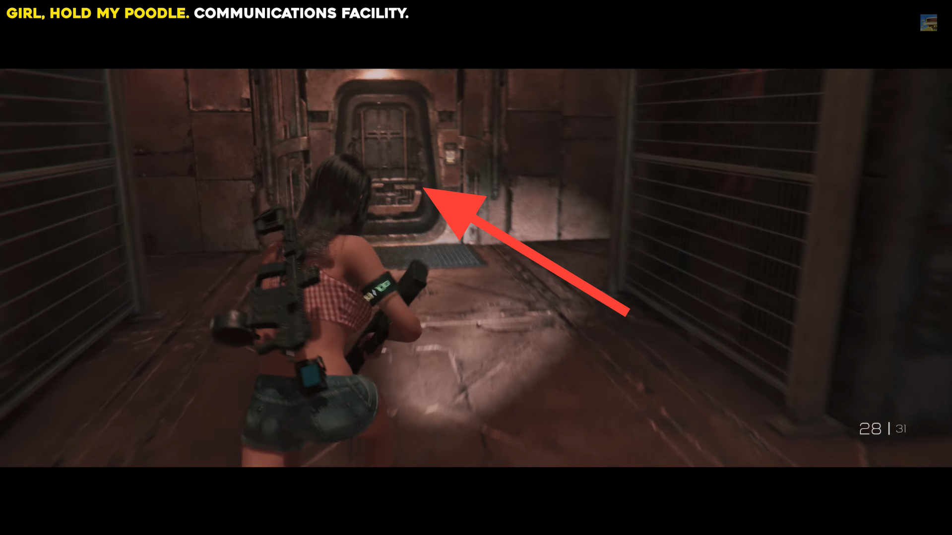 Enter the South Corridor, turn right, follow the path to the end. Image credits: TeamKill Media / YouTube: 100% Guides
