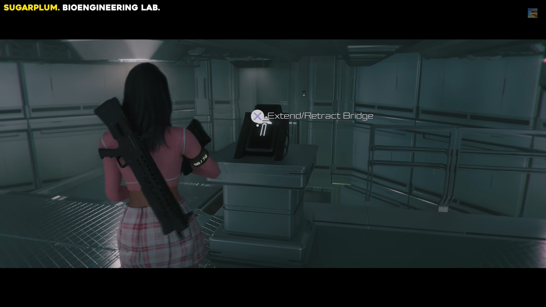 Extend the bridge, open the door, go straight, down the stairs, then left into the fixed-camera area. Image credits: TeamKill Media / YouTube: 100% Guides