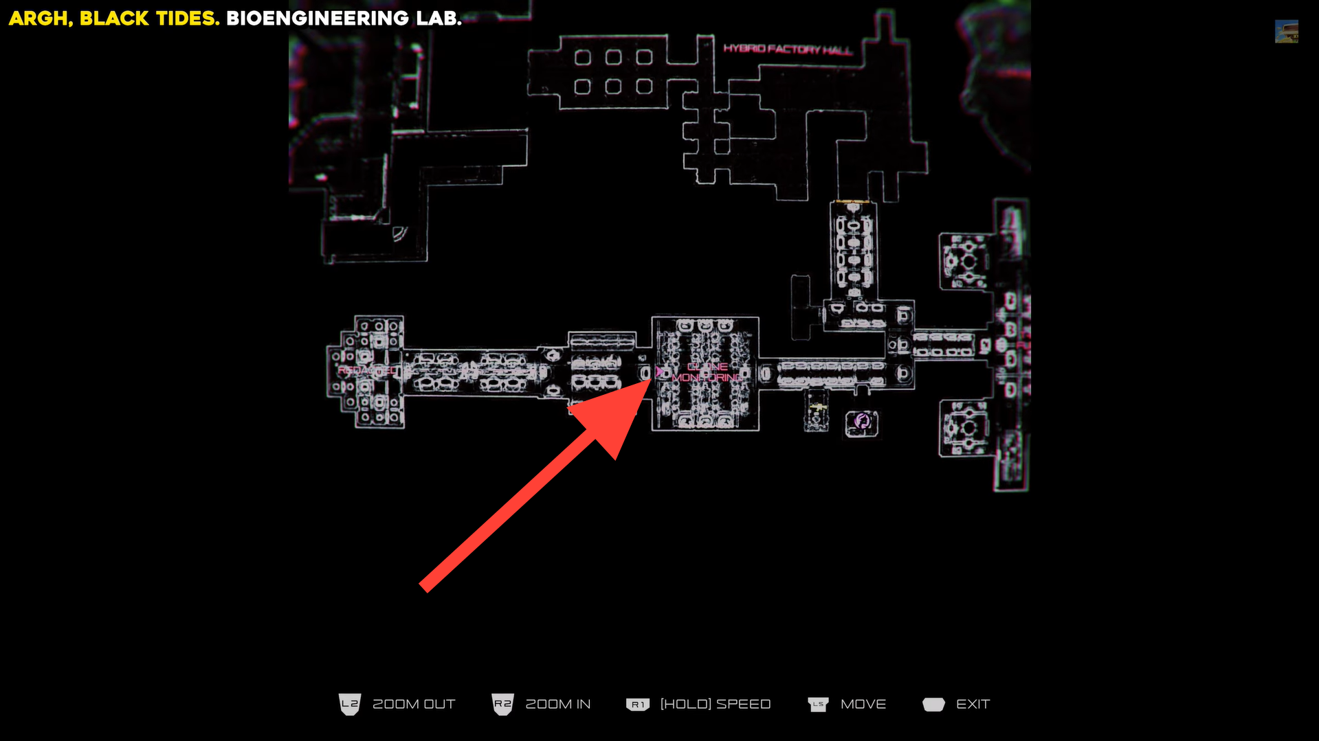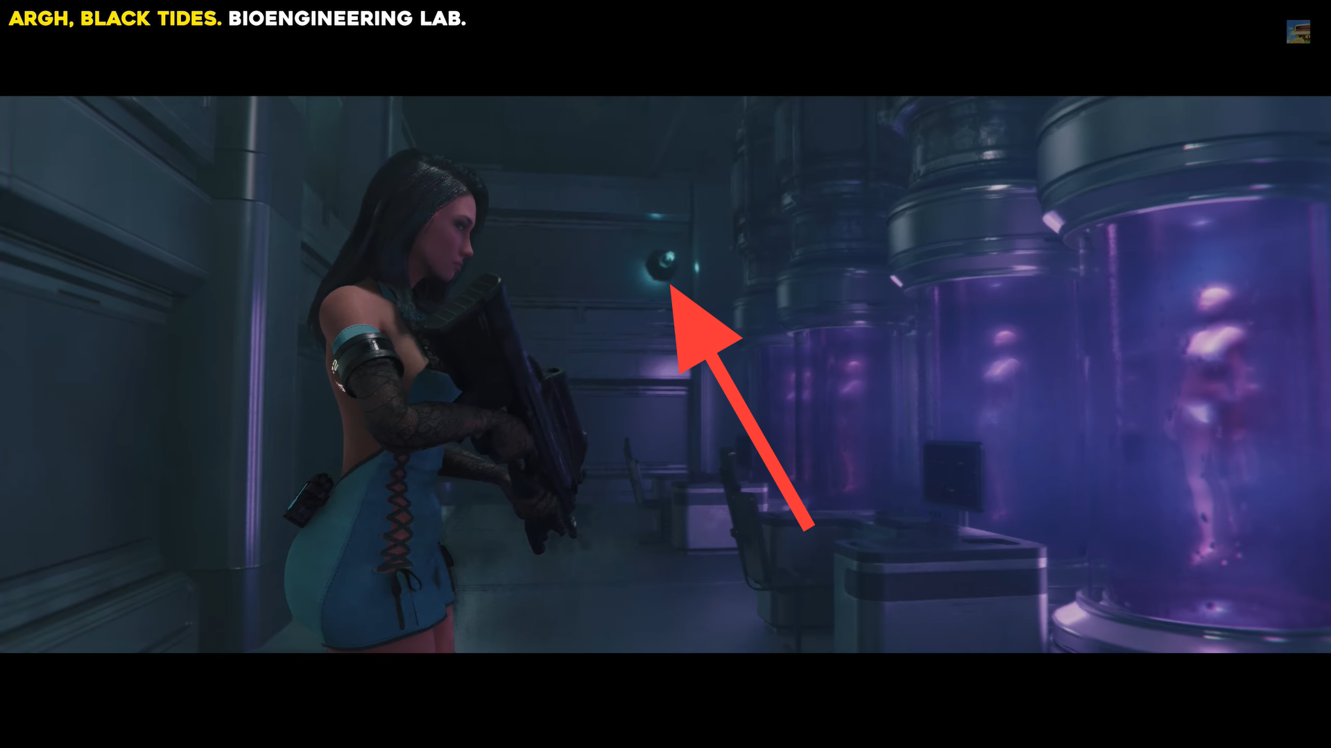 Head to the western side of the Clone Monitoring Room in the Bioengineering Lab, shoot the white bulb on the left wall, then take the route east of the room through the hallway of paintings.