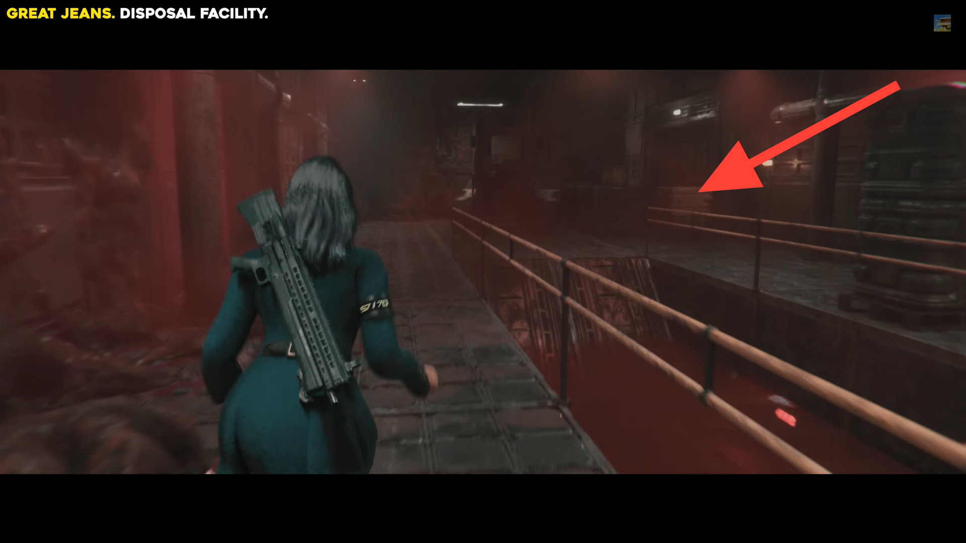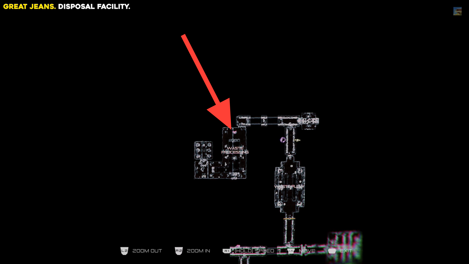 Head to the Waste Processing section in the Disposal Facility and crouch under the pipes to reach the far end.
