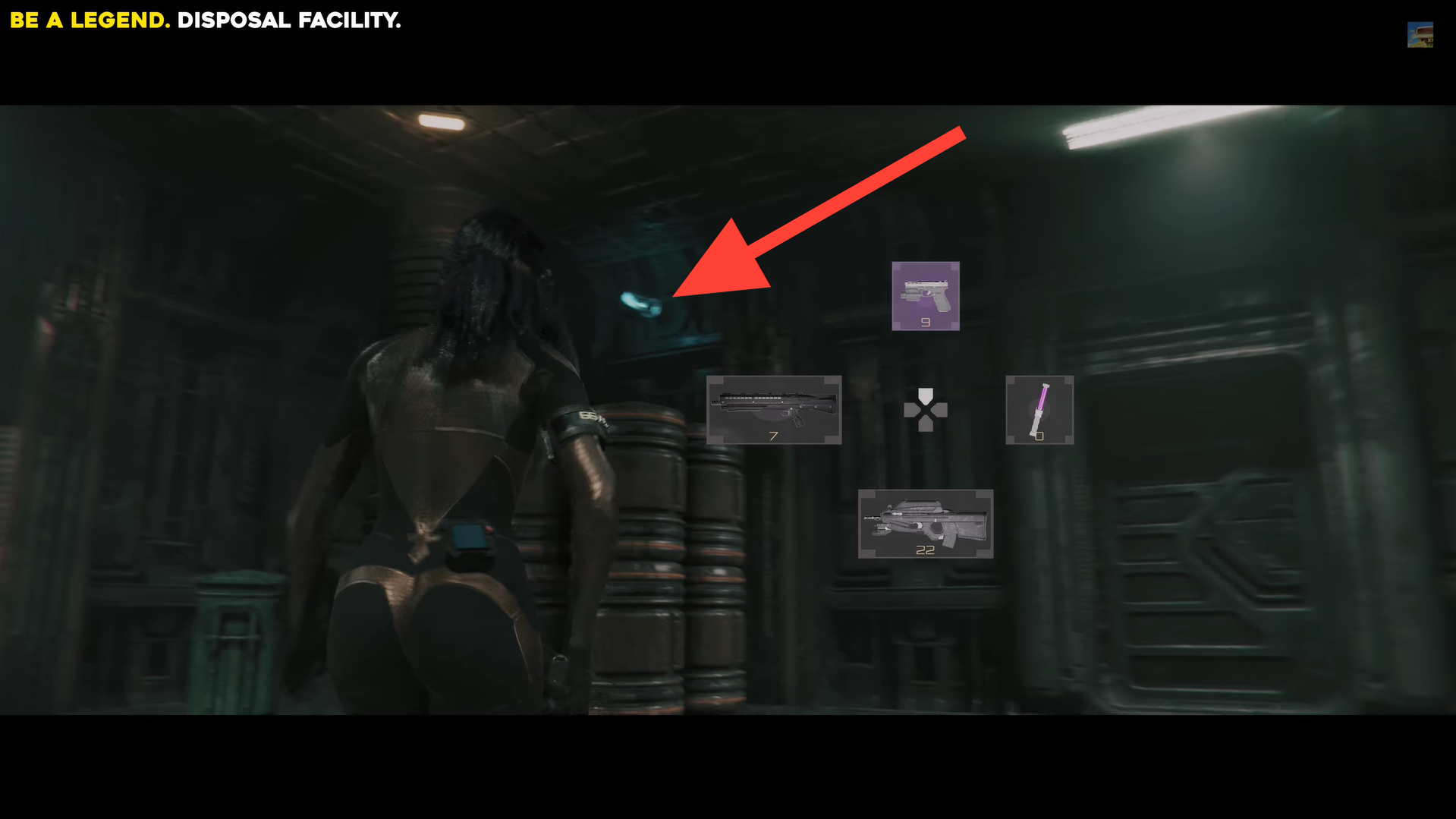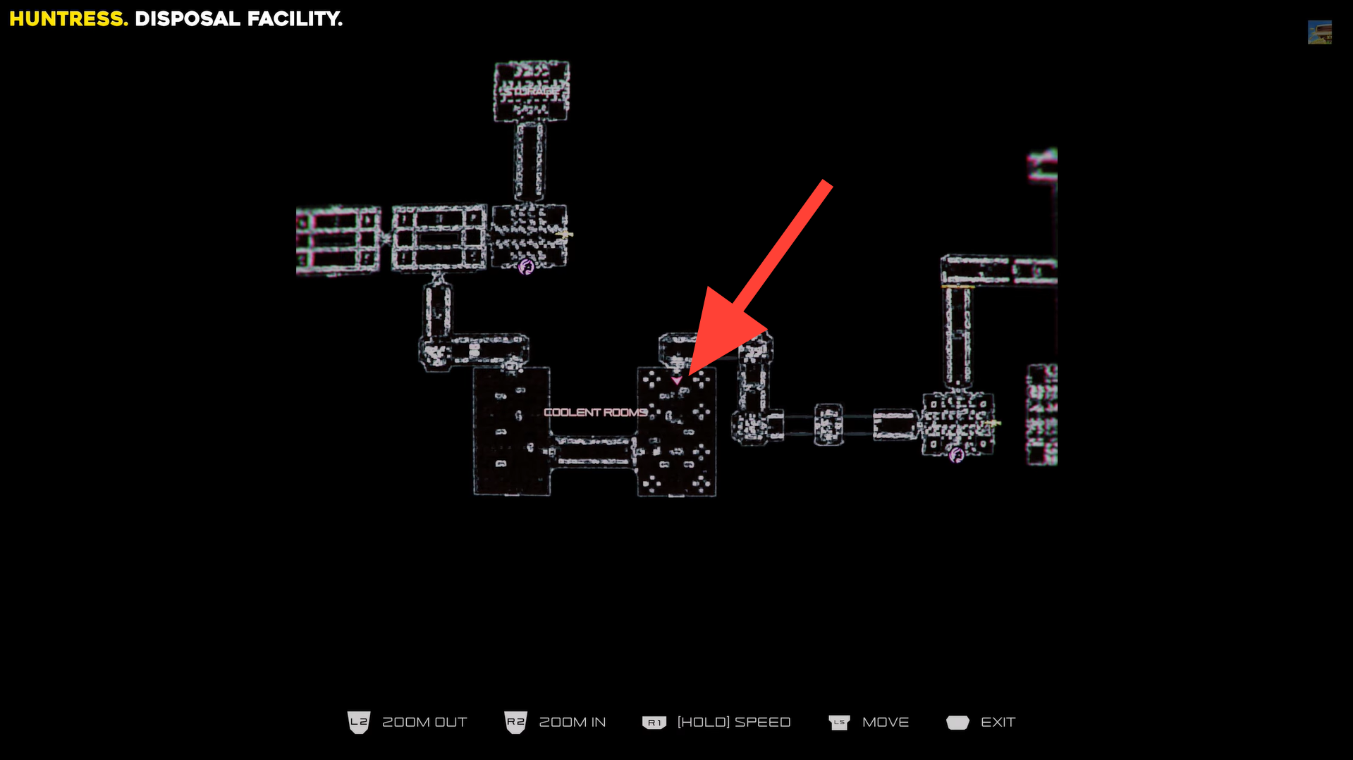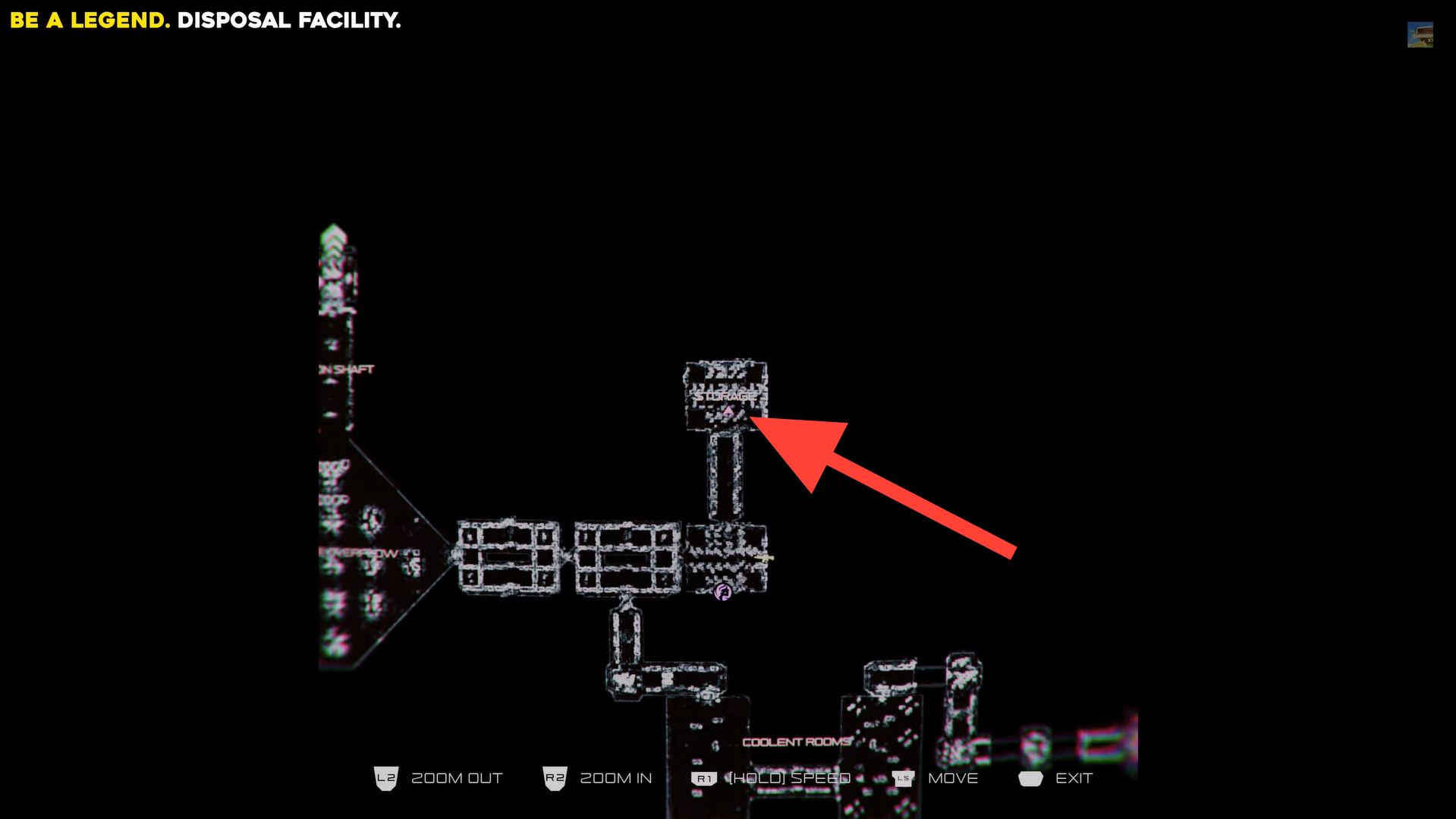 Enter the Storage Room in the Disposal Facility and go to the southeast side, shoot the white energy bulb on the wall, then exit and follow the straight path to the next room.