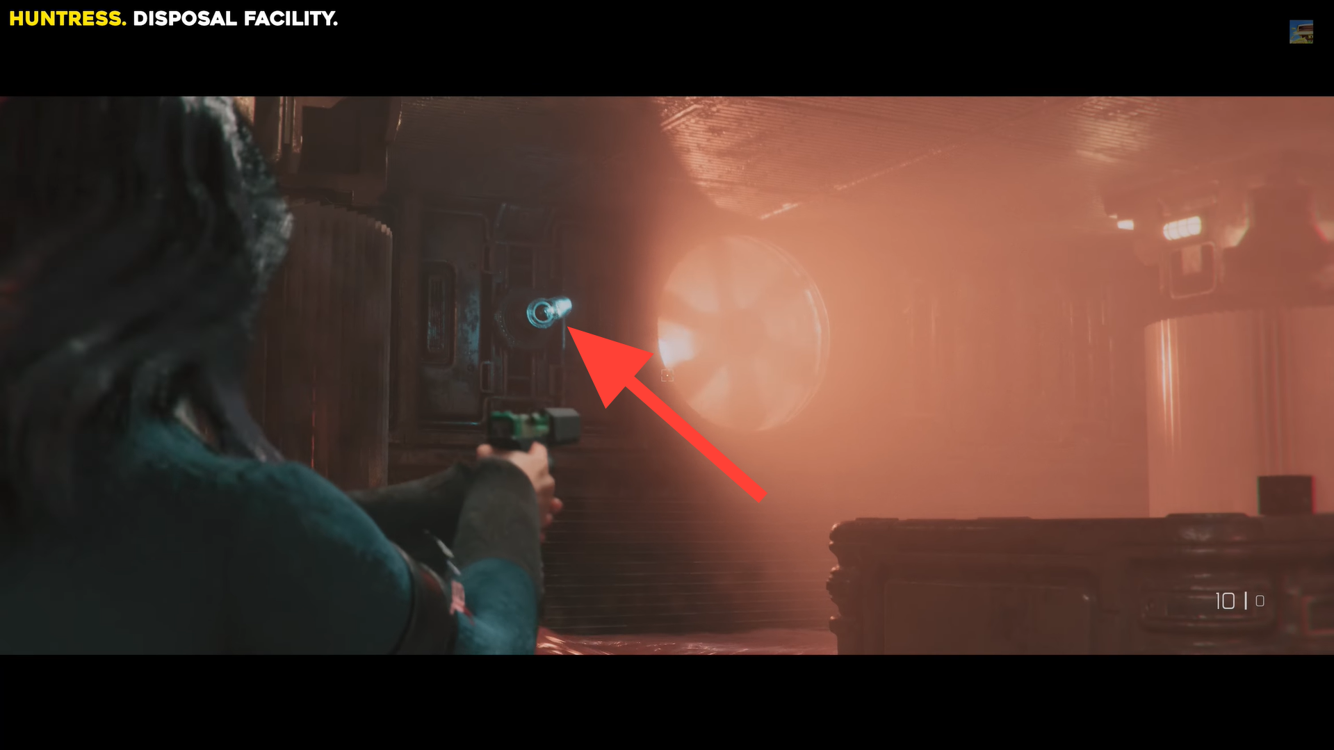 Enter the Coolant Rooms in the Disposal Facility from the northeast and head to the far side, shoot the white bulb on the left wall next to the big fan, then exit through the main door.