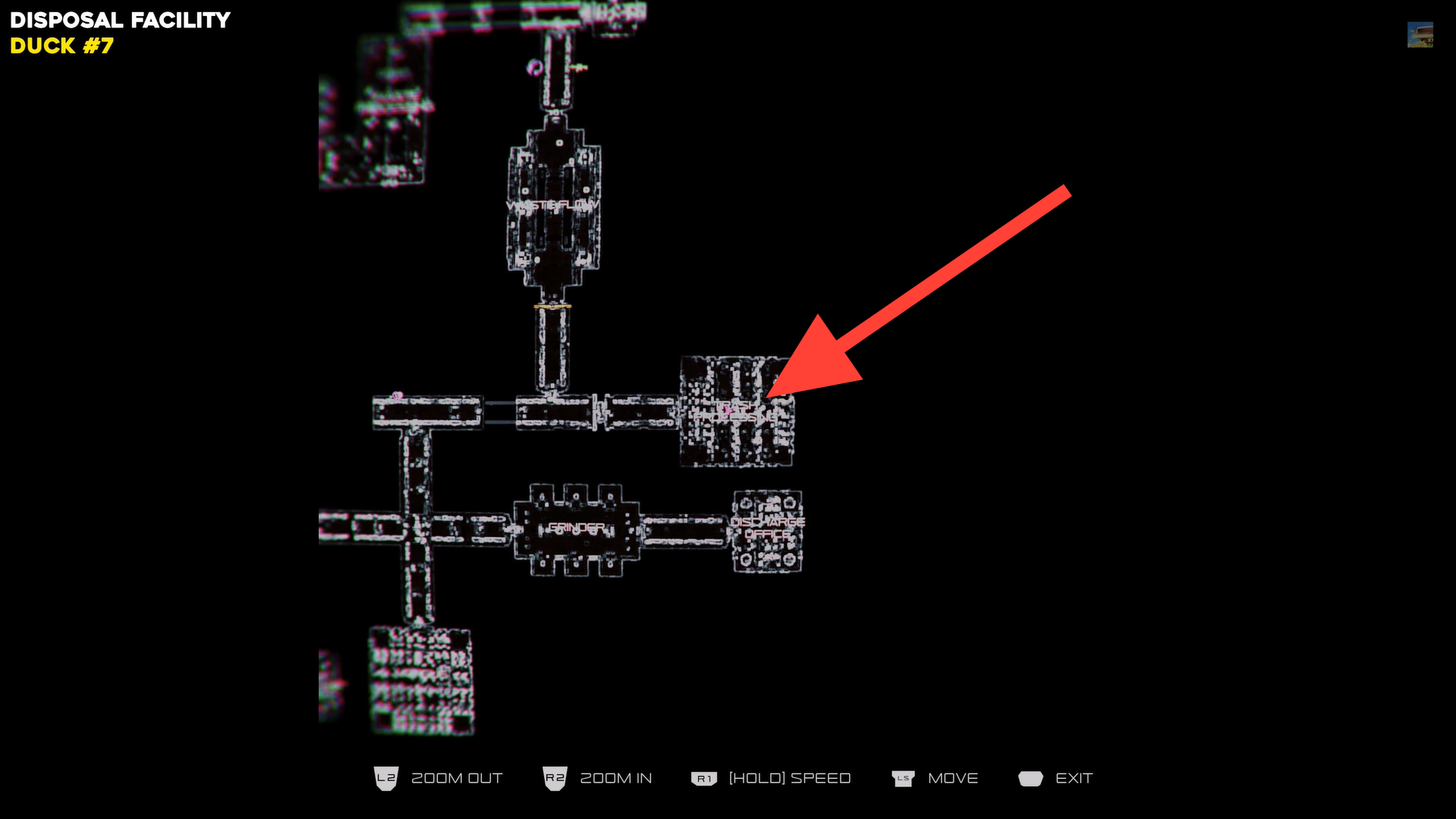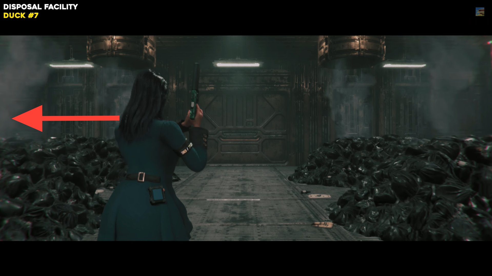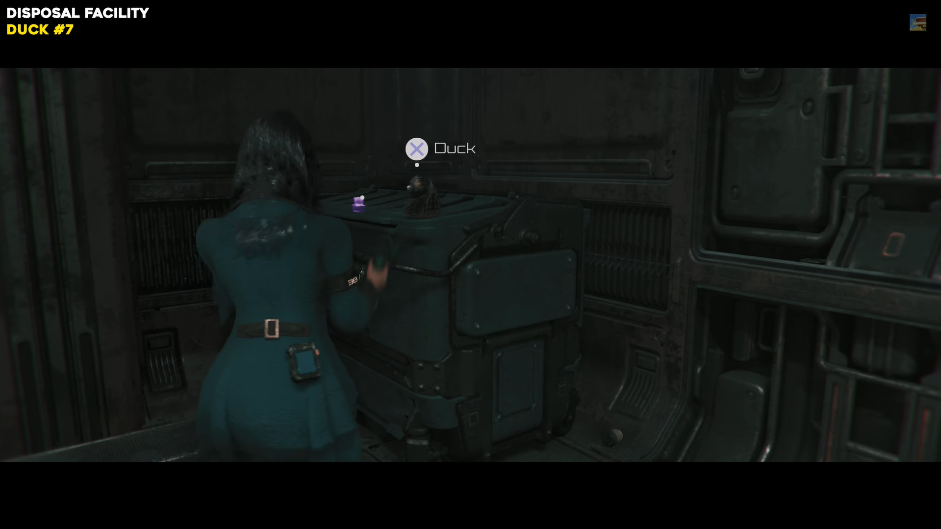 Enter the Trash Processing room in Disposal Facility and head to the left corner where a trash can is located. The duck is sitting on top, interact with it to collect it.