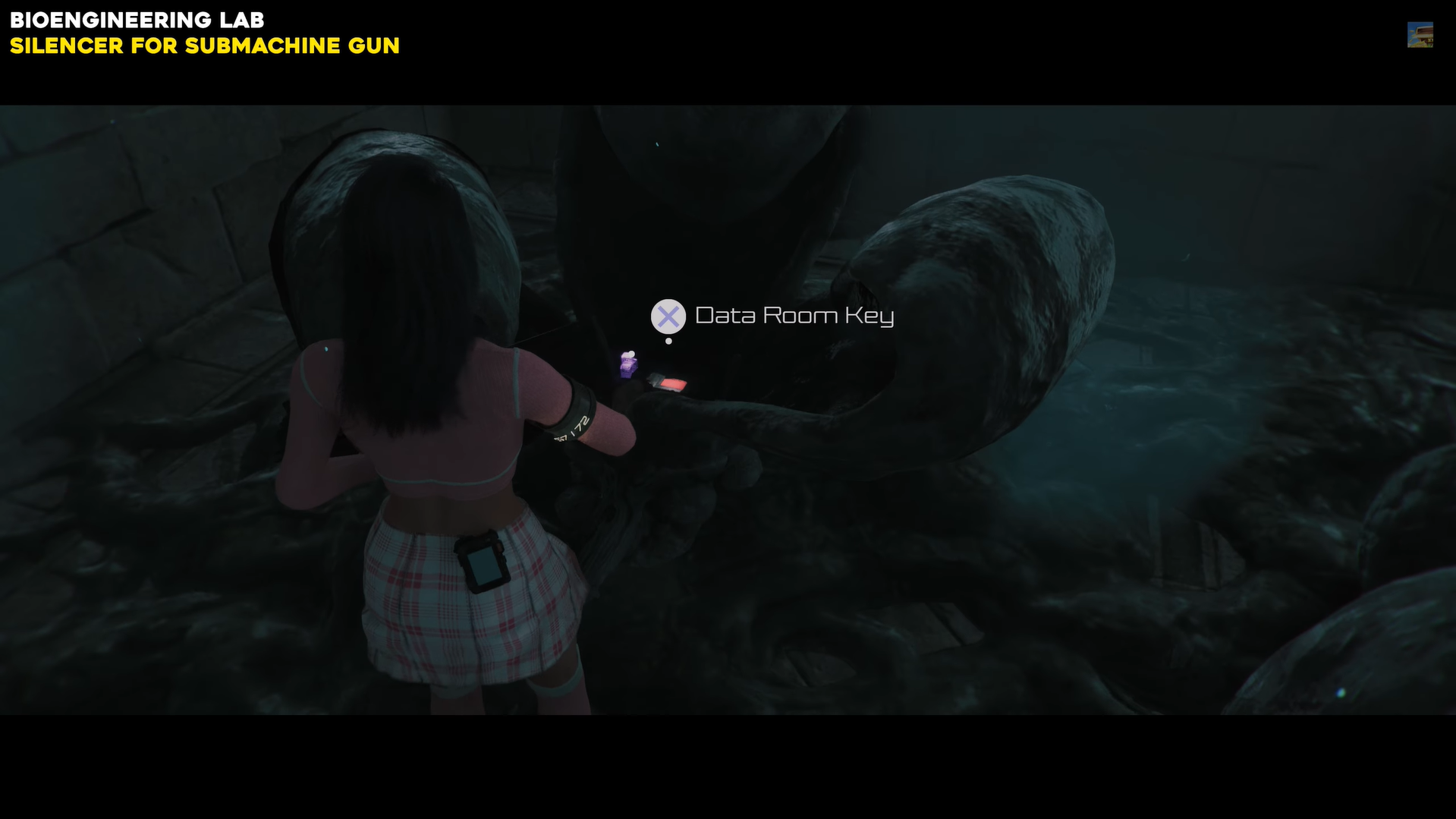 Head to the Lornian Stratum Site within the Bioengineering Lab. In the central area with the large egg-like objects, locate the Excavation Data Room Key.