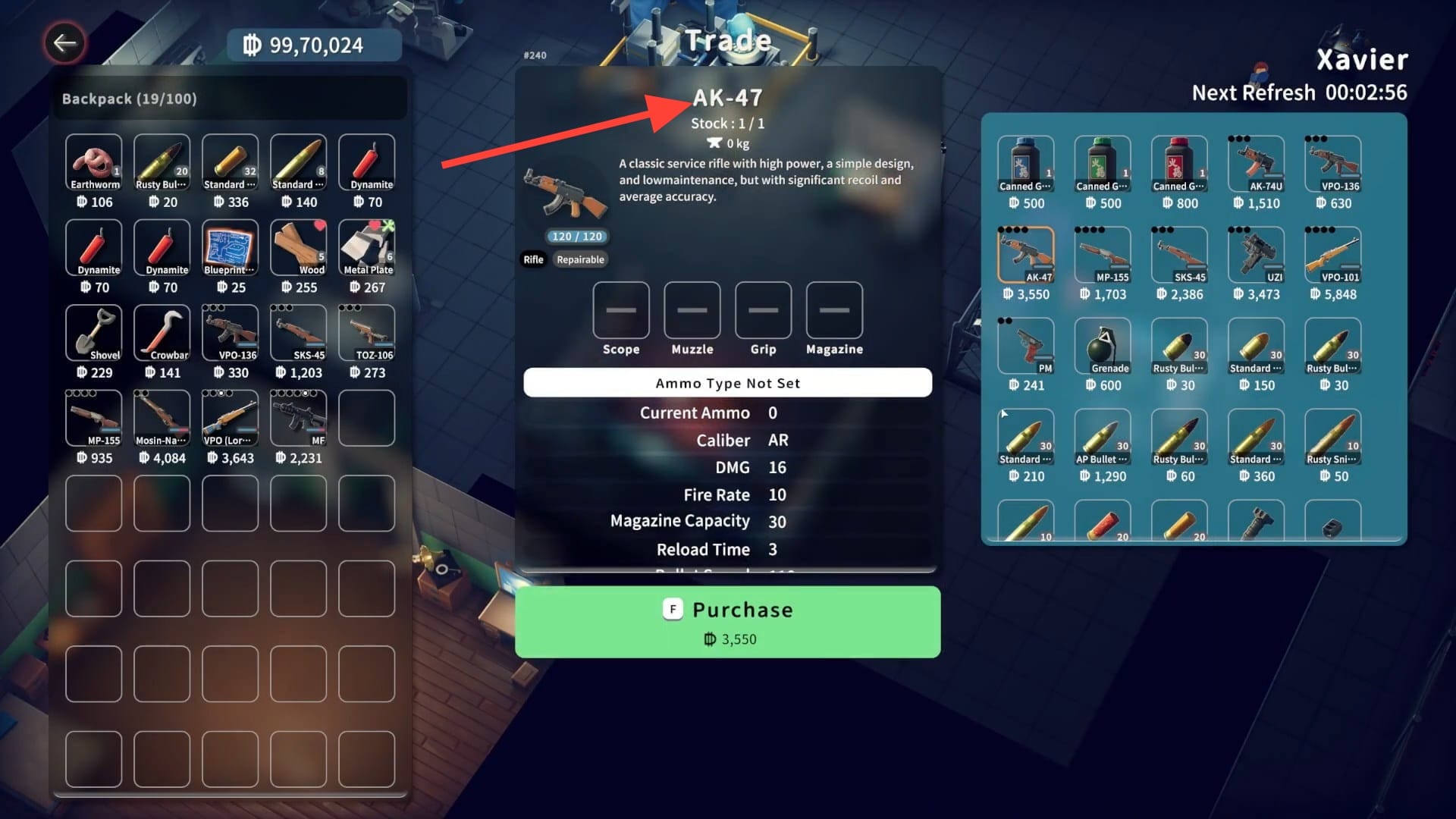 Accept the quest from Xavier at the Warehouse Area. Equip the provided AK-47 before entering the combat zone.