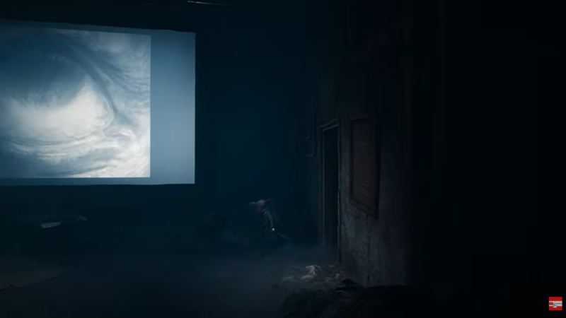 Inside the Cinema, the atmosphere shifts dramatically. The Sniffer begins patrolling. This enemy is highly sensitive to movement and sound, but you can avoid detection by blending in with the motionless creatures scattered around the area.