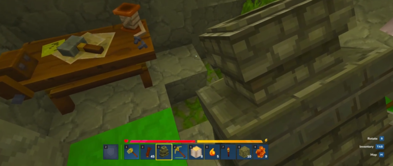 A furnace encourages frequent transfers: ore to input, fuel to fuel slot, ingots to storage, then ingots to workbench crafting. If storage is far away, time is lost repeatedly. A tight “crafting triangle” reduces that friction and makes progression feel smooth.