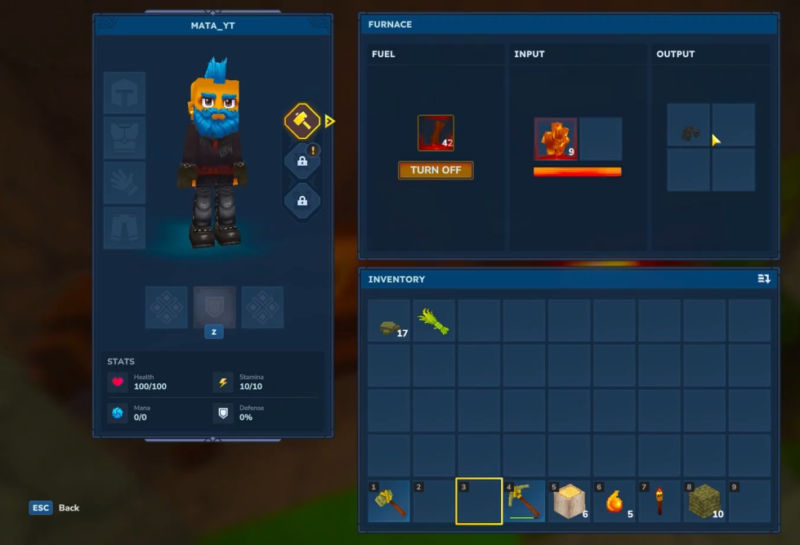 A furnace sits at the center of the “mine → refine → craft → upgrade” loop. Early exploration frequently produces copper and iron ore, but those materials do not become truly useful until smelted into ingots or bars. Once ingots exist, crafting options open up rapidly, and resource collection becomes more intentional: instead of gathering everything randomly, the focus shifts to targeted ore trips supported by planned fuel supplies.