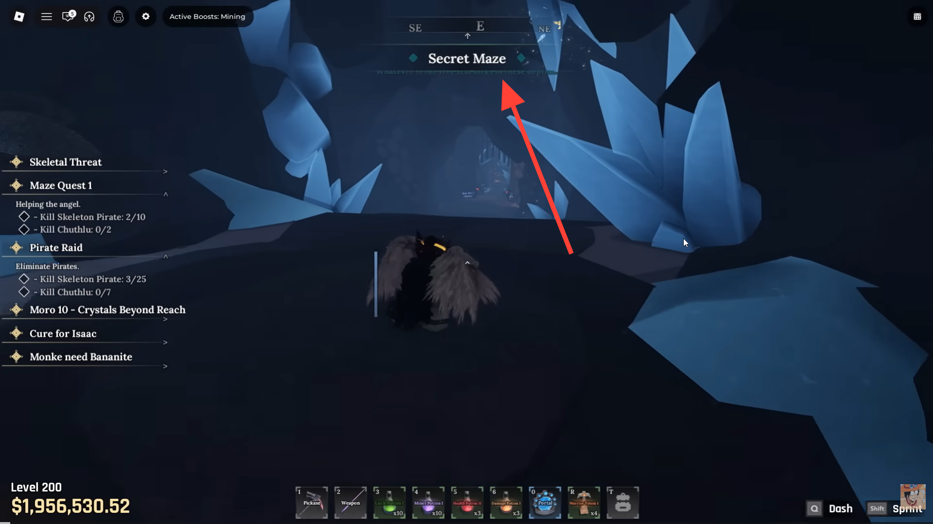 The Heavenly Pickaxe is the headline reward. It features extremely high mining power, strong bonus stats, and additional customization potential, making it one of the most desirable tools available during the event. Besides this, find Fungi's Shop in the Maze for potions and enhancements.