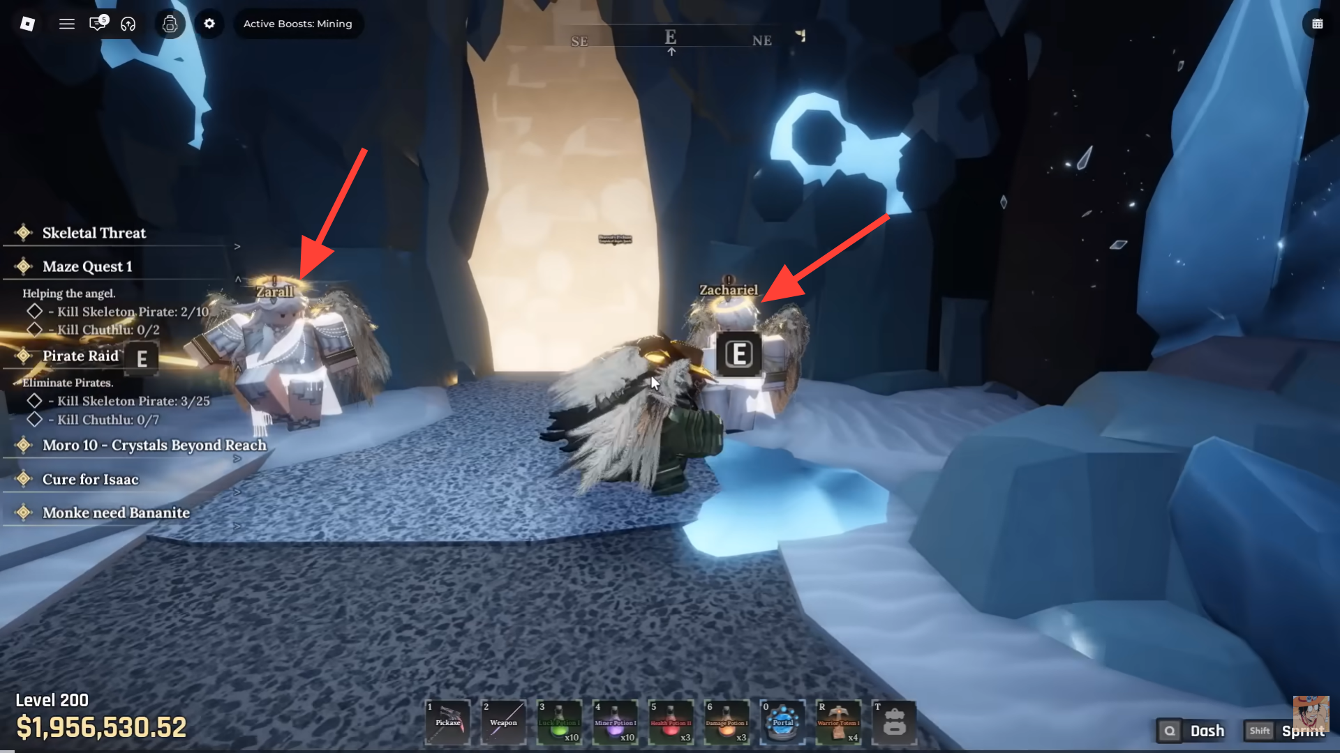 You will also come across the two angels - Zarall and Zachariel guarding the Heavenly Pickaxe inside the Maze.