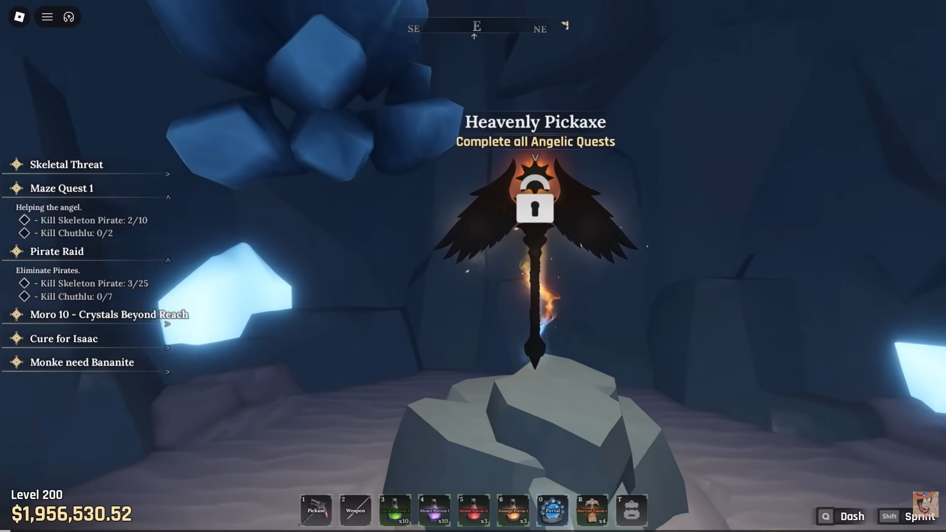 Players have noted that maze completion is important to get ot the Heavenly Pickaxe. It unlocks after completing all Angelic quests also known as Maze quests. Heavenly pickaxe can be bought for 2,400,000 after unlocking.