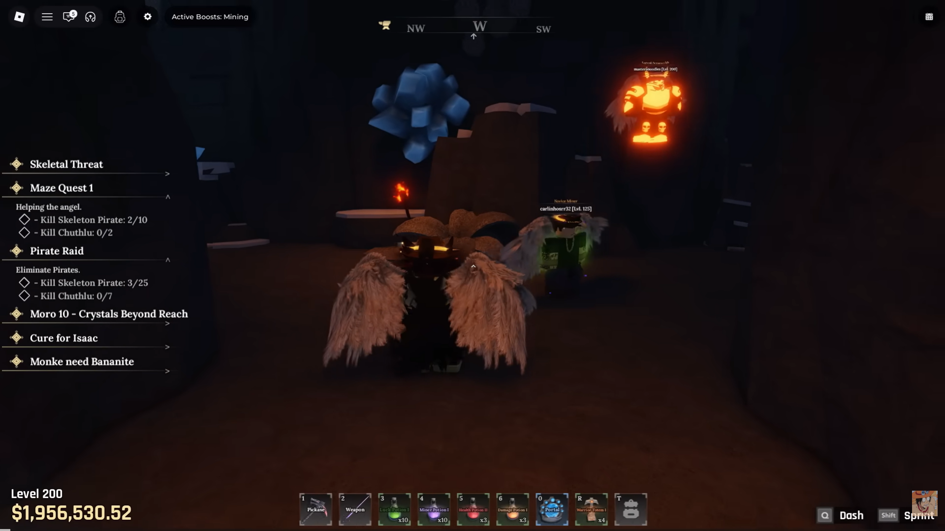 You will also come across the two angels – Zarall and Zachariel guarding the Heavenly Pickaxe inside the Maze.