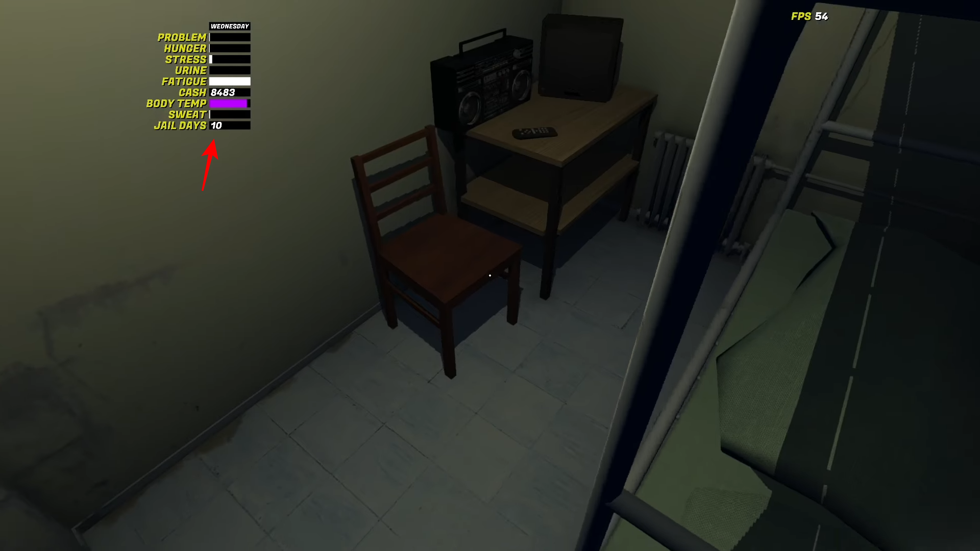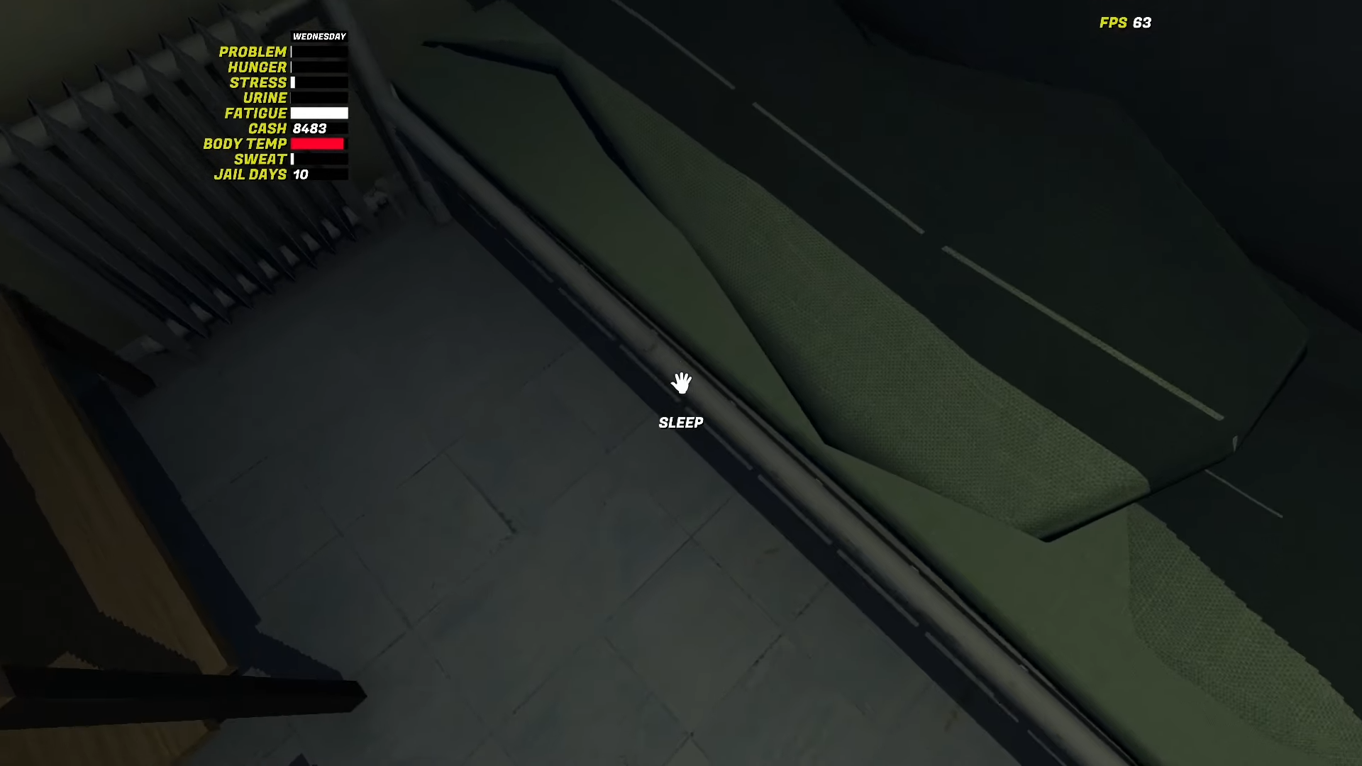 | Time Flow | 1 jail day = 2 real hours; sleeping advances time |