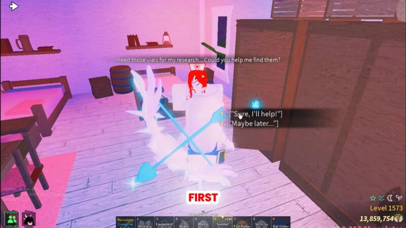 The first part focuses entirely on exploration. You must travel across multiple islands in the Fisch world and retrieve ten hidden vials. These are static collectibles placed in hard-to-reach or visually concealed spots. While no combat is involved, traversal can be time-consuming if you do not know the exact locations.