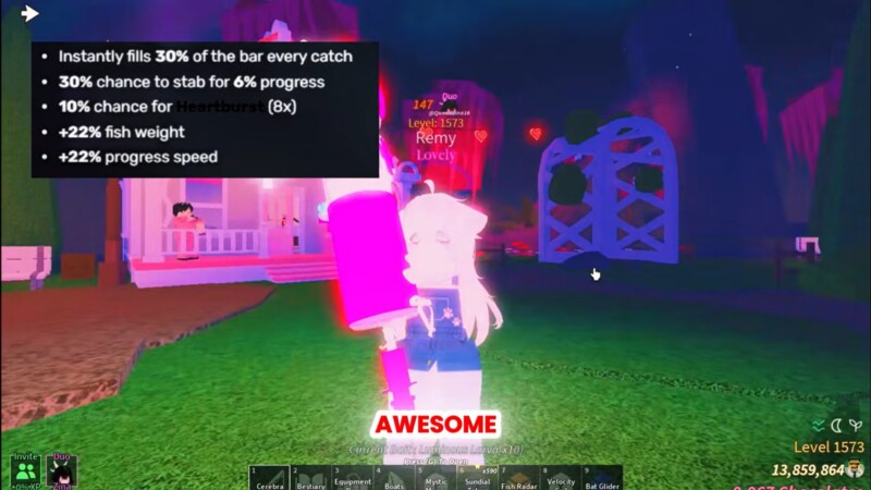 - The rod grants powerful passive bonuses, including progress boosts and an 8x catch multiplier chance.
