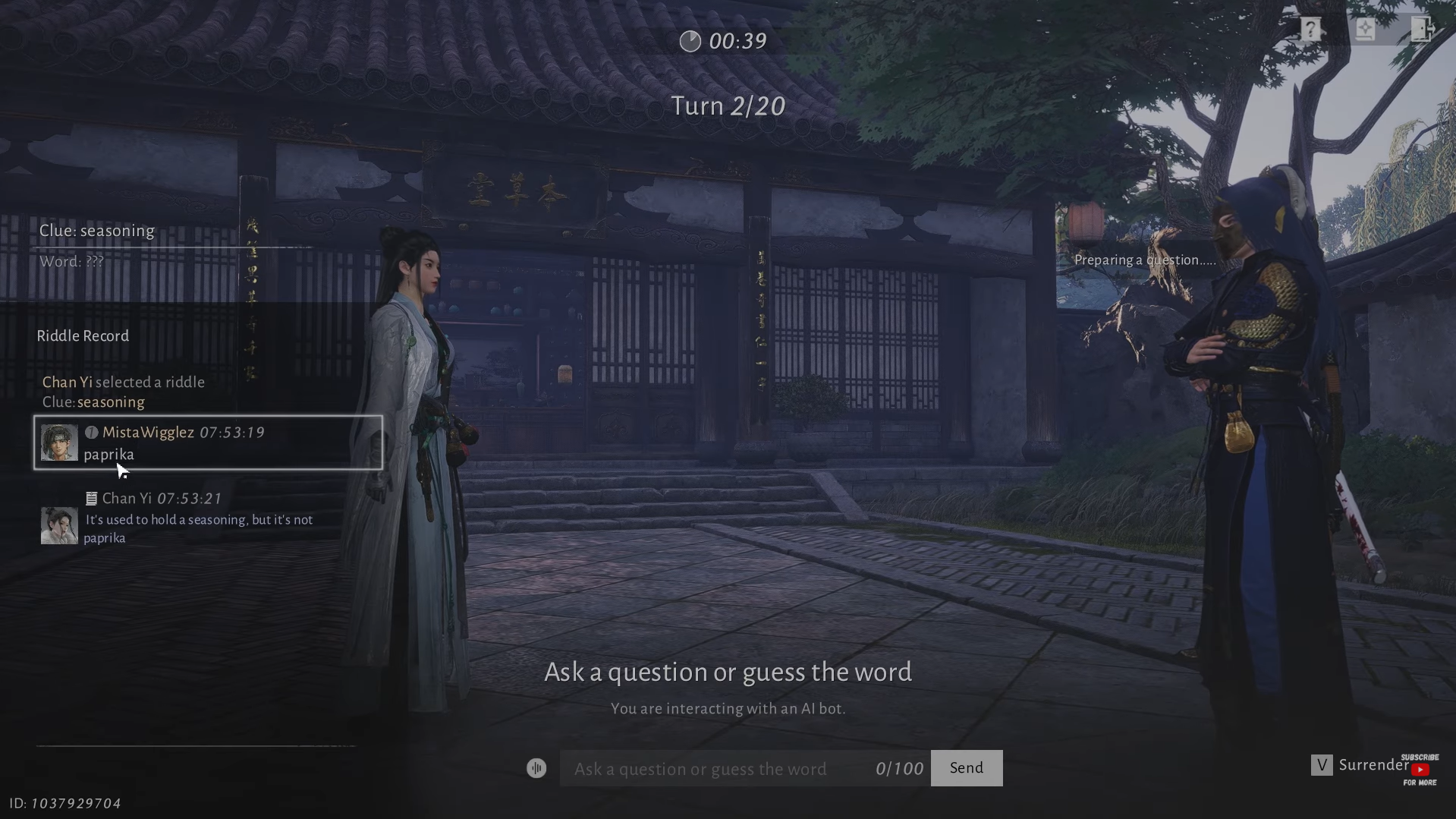 Start a Solo Riddle to receive a clue, then ask questions or make guesses (you get about 20 tries). Use the clue to narrow options, or check community guides if you’re stuck. A correct answer rewards +5 Intelligence.