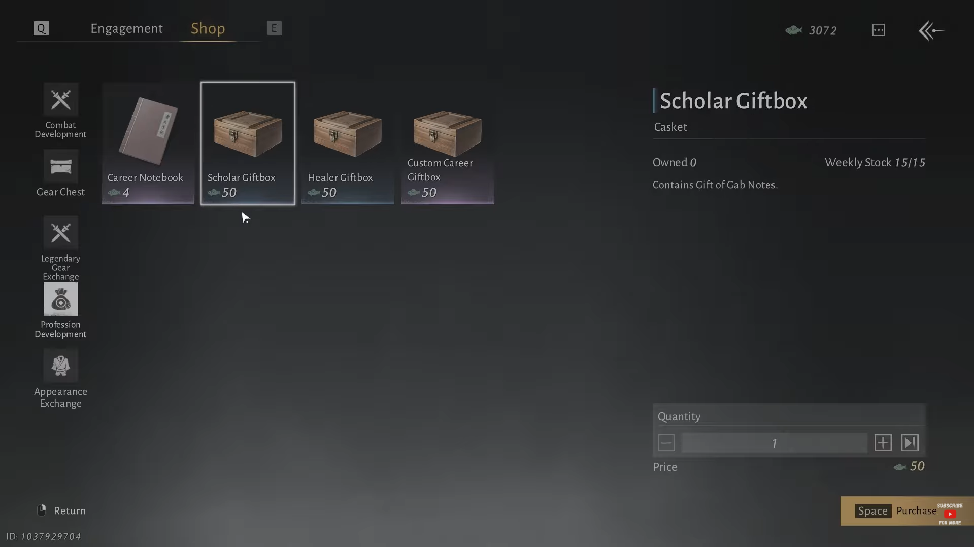 - Switch to Scholar in the Profession menu to unlock Scholar upgrades and Gift Boxes.