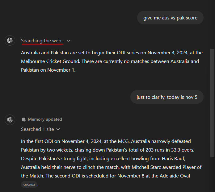 Do note that this does not mean that the information is up to date. But you can update ChatGPT’s memory and get it to provide you slightly more updated results.