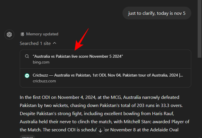 You can click on the ‘Searched # sites’ option to check where ChatGPT has sourced its information from.